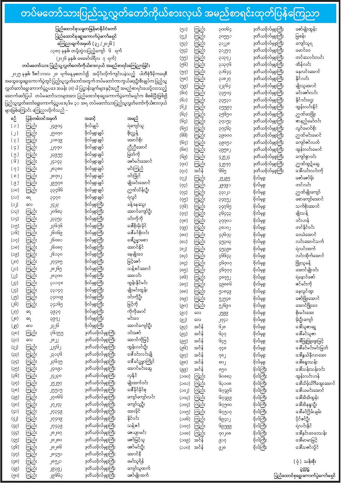 တပ်မတော်သားပြည်သူ့လွှတ်တော်ကိုယ်စားလှယ် အမည်စာရင်းထုတ်ပြန်ကြေညာ