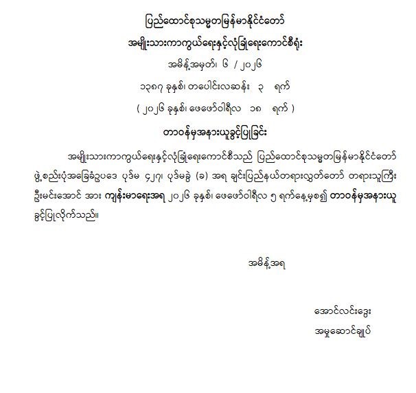 ဝန်ကြီးဌာန ကြေညာချက်များ