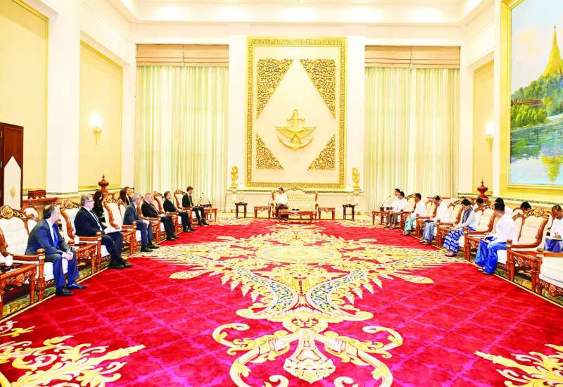 ပြည်ထောင်စုသမ္မတမြန်မာနိုင်ငံတော် ယာယီသမ္မတ နိုင်ငံတော်လုံခြုံရေးနှင့် အေးချမ်းသာယာရေးကော်မရှင်ဥက္ကဋ္ဌ ဗိုလ်ချုပ်မှူးကြီး မင်းအောင်လှိုင်ထံ ရုရှားဖက်ဒရေးရှင်းနိုင်ငံ၊ “Roscosmos” နိုင်ငံပိုင်ကော်ပိုရေးရှင်း၏ အထွေထွေညွှန်ကြားရေးမှူးချုပ် Mr. Dmitry V. Bakanov ဦးဆောင်သည့် ကိုယ်စားလှယ်အဖွဲ့က ယနေ့နံနက်ပိုင်းတွင် နေပြည်တော်ရှိ ဇေယျာသီရိဗိမာန်ဧည့်ခန်းမဆောင်၌ လာရောက်ဂါရဝပြုတွေ့ဆုံသည်။