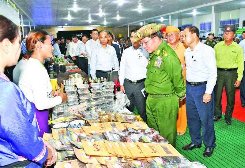 ၂၀၂၆ ခုနှစ် (၇၉) နှစ်မြောက် ပြည်ထောင်စုနေ့အထိမ်းအမှတ် ပြည်ထောင်စုအဆင့် MSME ထုတ်ကုန်ပြပွဲနှင့် ဈေးရောင်းပွဲတော်ဖွင့်ပွဲအခမ်းအနားကို ယနေ့နံနက်ပိုင်းတွင် နေပြည်တော်ရင်ပြင်၌ ကျင်းပပြုလုပ်ရာ ပြည်ထောင်စုသမ္မတမြန်မာနိုင်ငံတော်ယာယီသမ္မတ နိုင်ငံတော်လုံခြုံရေးနှင့်အေးချမ်းသာယာရေးကော်မရှင်ဥက္ကဋ္ဌ ဗိုလ်ချုပ်မှူးကြီး မင်းအောင်လှိုင် တက်ရောက်ချီးမြှင့်ဖွင့်လှစ်ပေးသည်။