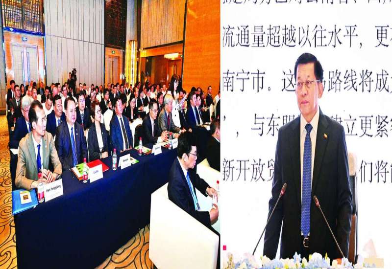 မြန်မာ-တရုတ် စီးပွားရေးပူးပေါင်းဆောင်ရွက်မှုမြှင့်တင်ရေး ဒုတိယအကြိမ်တွေ့ဆုံပွဲကို ယနေ့ဒေသစံတော်ချိန် မွန်းလွဲ ၁ နာရီတွင် တရုတ်ပြည်သူ့သမ္မတနိုင်ငံ စီချွမ်ပြည်နယ် ချန်ဒူးမြို့ရှိ Shangri La ဟိုတယ်၌ ကျင်းပပြုလုပ်ရာ ပြည်ထောင်စုသမ္မတမြန်မာနိုင်ငံတော် ယာယီသမ္မတ နိုင်ငံတော်လုံခြုံရေးနှင့်အေးချမ်းသာယာရေးကော်မရှင်ဥက္ကဋ္ဌ ဗိုလ်ချုပ်မှူးကြီး မင်းအောင်လှိုင် တက်ရောက်အမှာစကားပြောကြားသည်။