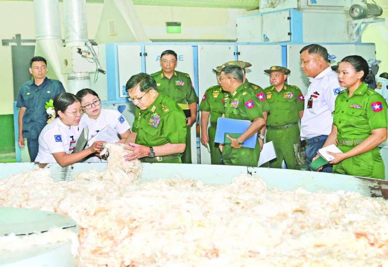 နိုင်ငံတော်စီမံအုပ်ချုပ်ရေးကောင်စီဥက္ကဋ္ဌ တပ်မတော်ကာကွယ်ရေးဦးစီးချုပ် ဗိုလ်ချုပ်မှူးကြီး မင်းအောင်လှိုင်သည် ခရီးစဉ်တွင် လိုက်ပါလာသည့် အဖွဲ့ဝင်များ၊ မန္တလေးတိုင်းဒေသကြီး ဝန်ကြီးချုပ်၊ အလယ်ပိုင်းတိုင်းစစ်ဌာနချုပ်တိုင်းမှူးနှင့် တာဝန်ရှိသူများ လိုက်ပါ၍ ယနေ့နံနက်ပိုင်းတွင် တပ်မတော်ချည်မျှင်နှင့် အထည်စက်ရုံ (မိတ္ထီလာ) နှင့် အမှတ် (၃) ဘိလပ်မြေစက်ရုံ (တန် ၁၂၀၀) တို့၏ ကုန်ထုတ်စွမ်းအား မြှင့်တင်ဆောင်ရွက်နေမှု အခြေအနေများကို သွားရောက်ကြည့်ရှုစစ်ဆေးသည်။