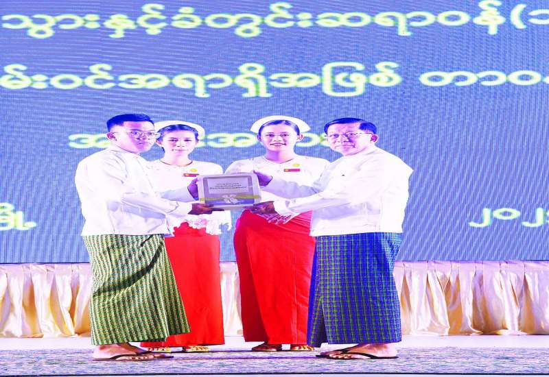 ကျန်းမာရေးဝန်ကြီးဌာန ဆရာဝန် (သစ်လွင်) များနှင့် သွားနှင့်ခံတွင်းဆရာဝန် (သစ်လွင်) များအား နိုင်ငံ့ဝန်ထမ်း ပြန်တမ်းဝင်အရာရှိအဖြစ် တာဝန်ပေးအပ်ခြင်းခန့်အပ်လွှာ ပေးအပ်ပွဲအခမ်းအနားအား ယနေ့နံနက်ပိုင်းတွင် ရန်ကုန်မြို့ရှိ မြန်မာကွန်ဗင်းရှင်းစင်တာ (ရန်ကုန်မြို့) ၌ ကျင်းပပြုလုပ်ရာ နိုင်ငံတော်စီမံအုပ်ချုပ်ရေးကောင်စီဥက္ကဋ္ဌ နိုင်ငံတော်ဝန်ကြီးချုပ် ဗိုလ်ချုပ်မှူးကြီး မင်းအောင်လှိုင် တက်ရောက်အမှာစကားပြောကြားသည်။