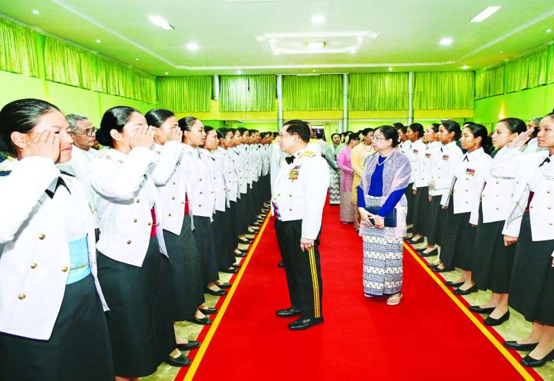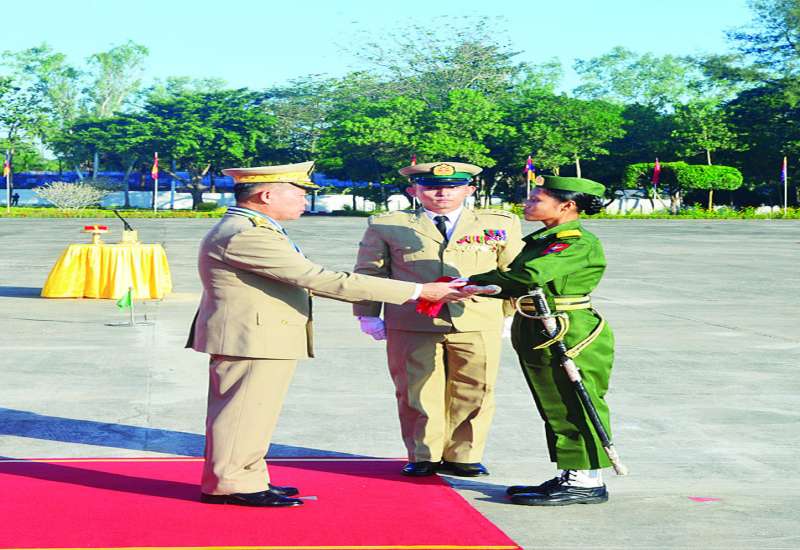 တပ်မတော်(ကြည်း)ဗိုလ်သင်တန်းကျောင်း(မှော်ဘီ)၊ ဘွဲ့ရအမျိုးသမီး ဗိုလ်လောင်းသင်တန်းအမှတ်စဉ်(၁၂) သင်တန်းဆင်းဂုဏ်ပြုညစာစားပွဲအခမ်းအနားကို ယနေ့ညနေပိုင်းတွင် ရန်ကုန်မြို့၊ တပ်မတော်(ကြည်း) ဗိုလ်သင်တန်းကျောင်း(မှော်ဘီ)ရှိ ပြည်ထောင်စုခန်းမ၌ကျင်းပရာ နိုင်ငံတော်လုံခြုံရေးနှင့် အေးချမ်းသာယာရေးကော်မရှင်ဥက္ကဋ္ဌ တပ်မတော်ကာကွယ်ရေးဦးစီးချုပ် ဗိုလ်ချုပ်မှူးကြီးမင်းအောင်လှိုင် တက်ရောက်ချီးမြှင့်သည်။