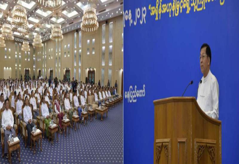 ဘဏ္ဍာရေးဆိုင်ရာကော်မရှင်(၁/၂၀၂၃) အစည်းအဝေးကို ယနေ့မွန်းလွဲပိုင်းတွင် နေပြည်တော်ရှိ နိုင်ငံတော်စီမံအုပ်ချုပ်ရေးကောင်စီဥက္ကဋ္ဌရုံး အစည်းအဝေးခန်းမ၌ ကျင်းပရာ ဘဏ္ဍာရေးဆိုင်ရာကော်မရှင်ဥက္ကဋ္ဌ နိုင်ငံတော်စီမံအုပ်ချုပ်ရေးကောင်စီဥက္ကဋ္ဌ နိုင်ငံတော်ဝန်ကြီးချုပ် ဗိုလ်ချုပ်မှူးကြီးမင်းအောင်လှိုင် တက်ရောက်အမှာစကားပြောကြားသည်။