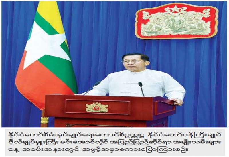 နိုင်ငံတော်စီမံအုပ်ချုပ်ရေးကောင်စီဥက္ကဋ္ဌ တပ်မတော်ကာကွယ်ရေးဦးစီးချုပ် ဗိုလ်ချုပ်မှူးကြီး မင်းအောင်လှိုင်သည် ယနေ့မွန်းလွဲပိုင်းတွင် အနောက်မြောက်တိုင်း စစ်ဌာနချုပ်၊ မုံရွာတပ်နယ်မှ အရာရှိ၊ စစ်သည် မိသားစုများအား တိုင်းစစ်ဌာနချုပ်၊ ဇေယျာသီရိခန်းမ၌ တွေ့ဆုံအမှာစကား ပြောကြားသည်။
