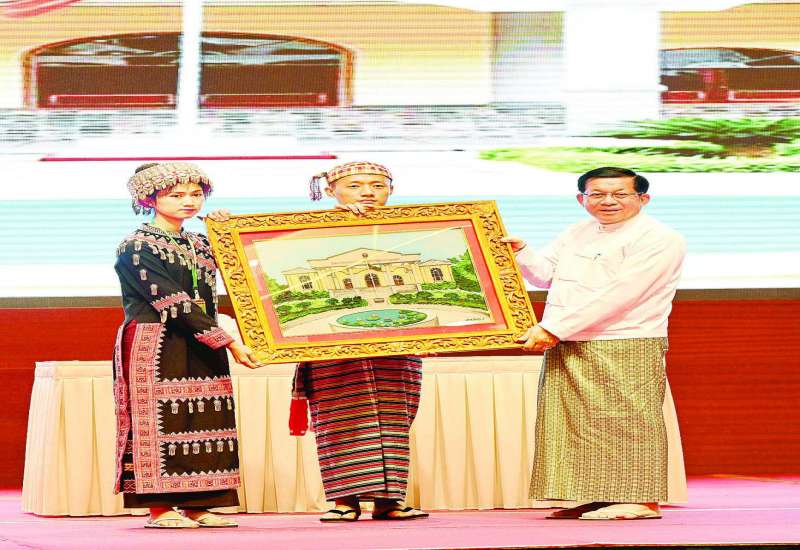 ပြည်ထောင်စုသမ္မတမြန်မာနိုင်ငံတော်ယာယီသမ္မတ နိုင်ငံတော်လုံခြုံရေးနှင့်အေးချမ်း သာယာရေးကော်မရှင်ဥက္ကဋ္ဌ ဗိုလ်ချုပ်မှူးကြီး မင်းအောင်လှိုင်သည် ပြည်ထောင်စုတိုင်းရင်းသား လူမျိုးများဖွံ့ဖြိုးရေးတက္ကသိုလ် ပညာရေးဘွဲ့ ၅ နှစ်သင်တန်းအမှတ်စဉ်(၇)မှ ကျောင်းသား၊ ကျောင်းသူများကို ယနေ့နံနက်ပိုင်းတွင် နေပြည်တော်ရှိ မြန်မာအပြည်ပြည်ဆိုင်ရာကွန်ဗင်းရှင်း ဗဟိုဌာန(၁)(MICC-1)၌ တွေ့ဆုံအမှာစကားပြောကြားသည်။