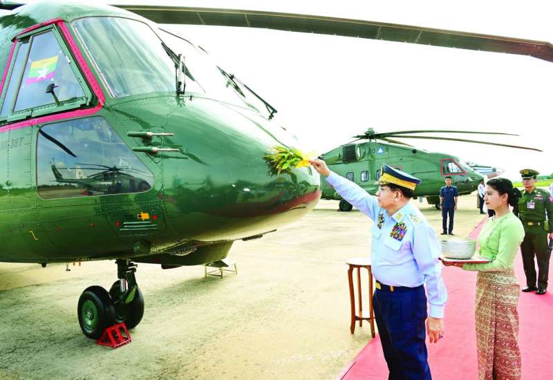 တပ်မတော် (လေ) မှ လေယာဉ်/ ရဟတ်ယာဉ်များ တပ်တော်ဝင်ခြင်းအခမ်းအနားကို ယနေ့နံနက်ပိုင်းတွင် နေပြည်တော်လေတပ်စခန်း၌ ကျင်းပပြုလုပ်ရာ နိုင်ငံတော်လုံခြုံရေးနှင့်အေးချမ်းသာယာရေးကော်မရှင်ဥက္ကဋ္ဌ တပ်မတော်ကာကွယ်ရေးဦးစီးချုပ် ဗိုလ်ချုပ်မှူးကြီး မင်းအောင်လှိုင် တက်ရောက်ချီးမြှင့်သည်။