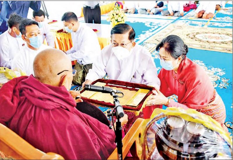 နိုင်ငံတော်စီမံအုပ်ချုပ်ရေးကောင်စီဥက္ကဋ္ဌ၊ တပ်မတော်ကာကွယ်ရေးဦးစီးချုပ် ဗိုလ်ချုပ်မှူးကြီး မင်းအောင်လှိုင်သည် ယနေ့နံနက်ပိုင်းတွင် ဇနီးဒေါ်ကြူကြူလှ၊ ကောင်စီဝင်များဖြစ်ကြသည့် ဗိုလ်ချုပ်ကြီးတင်အောင်စန်း၊ ဒုတိယဗိုလ်ချုပ်ကြီး မိုးမြင့်ထွန်း၊ ဒုတိယဗိုလ်ချုပ်ကြီးစိုးထွဋ်၊ ပြည်ထောင်စုဝန်ကြီးများဖြစ်ကြသည့် ဦးအောင်နိုင်ဦး၊ ဒေါက်တာ ညွန့်ဖေ၊ ဒေါက်တာ သက်ခိုင်ဝင်း၊ ဦးမောင်မောင်အုန်း၊ မန္တလေးတိုင်းဒေသကြီး စီမံအုပ်ချုပ်ရေးကောင်စီဥက္ကဋ္ဌ ဦးမောင်ကို၊ ကာကွယ်ရေးဦးစီးချုပ်(ရေ) ဗိုလ်ချုပ်ကြီး မိုးအောင်နှင့်ဇနီး၊ ကာကွယ်ရေး ဦးစီးချုပ်ရုံးမှ တပ်မတော်အရာရှိကြီးများနှင့် ဇနီးများ၊ အလယ်ပိုင်းတိုင်း စစ်ဌာနချုပ်တိုင်းမှူး ဗိုလ်ချုပ်ကိုကိုဦးနှင့် အဖွဲ့ဝင်များနှင့်အတူ မန္တလေးမြို့ ကျက်သရေဆောင် မဟာမြတ်မုနိ ရုပ်ရှင်တော်မြတ်ကြီးအား သွားရောက်ဖူးမြော် ကြည်ညိုသည်။