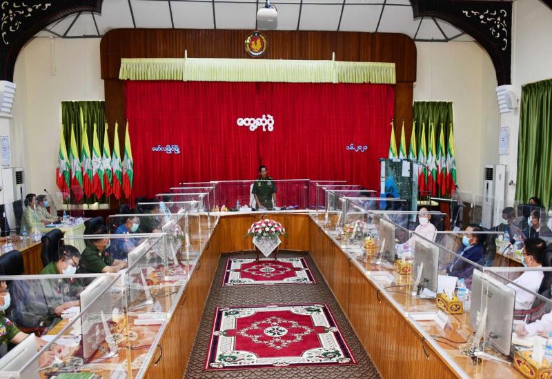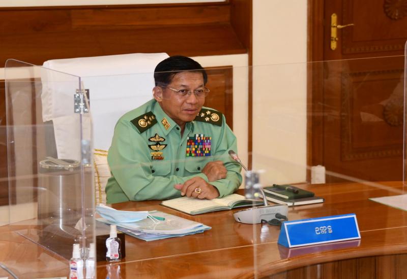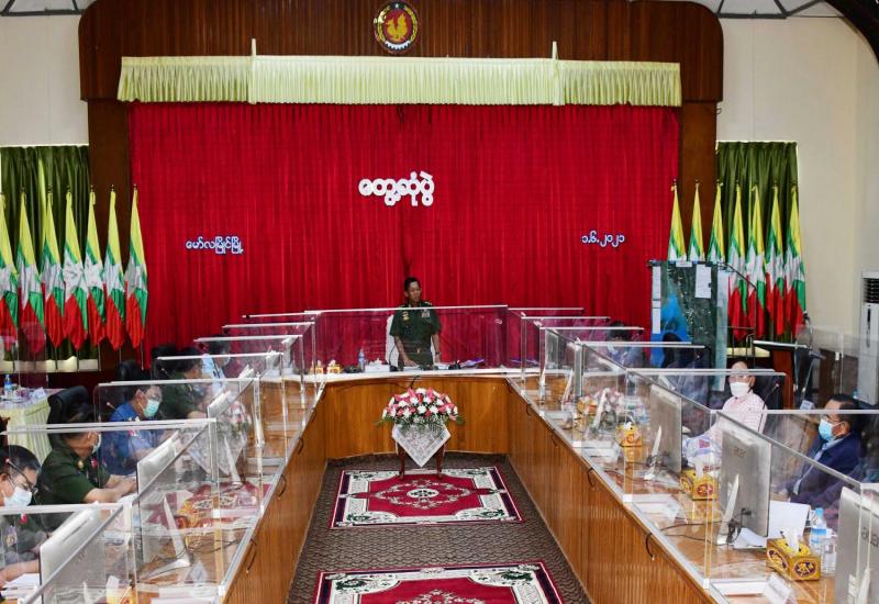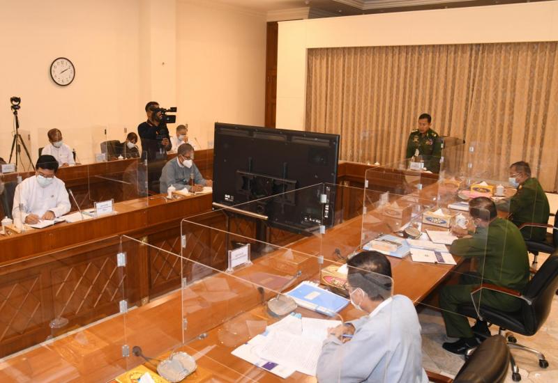 နိုင်ငံတော်စီမံအုပ်ချုပ်ရေးကောင်စီ စီမံခန့်ခွဲရေး ကော်မတီ အစည်းအဝေး (၆/၂၀၂၁) ကို ယနေ့မွန်းလွဲပိုင်းတွင် နေပြည်တော်ရှိ နိုင်ငံတော်စီမံအုပ်ချုပ်ရေး ကောင်စီဥက္ကဋ္ဌရုံး အစည်းအဝေး ခန်းမ၌ ကျင်းပရာ နိုင်ငံတော်စီမံအုပ်ချုပ်ရေးကောင်စီ ဥက္ကဋ္ဌ၊ တပ်မတော်ကာကွယ်ရေးဦးစီးချုပ် ဗိုလ်ချုပ်မှူးကြီး မင်းအောင်လှိုင် တက်ရောက်အမှာစကား ပြောကြားသည်။