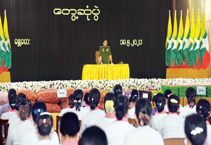 နိုင်ငံတော်စီမံအုပ်ချုပ်ရေးကောင်စီ ဥက္ကဋ္ဌ၊ တပ်မတော်ကာကွယ်ရေးဦးစီးချုပ် ဗိုလ်ချုပ်မှူးကြီး မင်းအောင်လှိုင်သည် ယနေ့မွန်းလွဲပိုင်းတွင် အရှေ့တောင်တိုင်း စစ်ဌာနချုပ်၊ မော်လမြိုင်တပ်နယ်မှ အရာရှိ၊ စစ်သည်၊ မိသားစုများအား တွေ့ဆုံ အမှာစကား ပြောကြားသည်။
