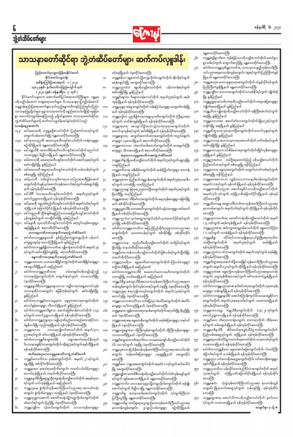 ဝန်ကြီးဌာန ကြေညာချက်များ