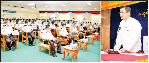 ဆောင်ရွက်နေရသူများဖြစ်သည်နှင့်အညီ ဌာန၏အမိန့်၊ ညွှန်ကြားချက် များ၊ လုပ်ထုံး လုပ်နည်းများနှင့်အညီ တိတိကျကျဆောင်ရွက်ကြရန်  လိုအပ်ပါကြောင်း၊ လူဝင်မှု ကြီးကြပ် ရေးလုပ်ငန်းများကို အကောင်အထည်ဖော်ရာတွင် နိုင်ငံအတွင်းရှိ နိုင်ငံခြားသား များအား ဥပဒေနှင့် အညီ ဝင်/ထွက်သွားလာနေထိုင်ရေးအတွက် စနစ်တကျ ဂရုပြုဆောင်ရွက်ကြရန်၊ နိုင်ငံတွင်းရှိ ပြည်သူများအား ၎င်းတို့၏ နိုင်ငံသား ဖြစ်မှု အရည်အချင်းအရ ကိုင်ဆောင်သင့်သည့် ကတ်ပြားတစ်မျိုးမျိုးရရှိကိုင်ဆောင်နိုင်ရေးနှင့် ပြည်သူ့အင်အားဆိုင်ရာလုပ်ငန်းများ တိကျမှန် ကန်စွာဆောင်ရွက်နိုင်ရေးတို့ကိုလည်း အလေးထားကြိုးပမ်းဆောင်ရွက်ကြရန် လိုအပ်ပါ ကြောင်း၊ တာဝန်ရှိသူအဆင့်ဆင့်ကလည်း ဝန်ထမ်းများ၏သက်သာ ချောင်ချိရေးနှင့် လုပ်ငန်း လိုအပ်ချက်များကို အတတ်နိုင်ဆုံး အလေးထားဖြည့်ဆည်းပေးကြရန်လိုကြောင်း၊ ယခု ဆန္ဒဖော်ထုတ်ပွဲတွင်လည်း မိမိတို့၏လိုအပ်ချက်များ၊ ဌာနမှ ဖြည့်ဆည်းပေးရန်များကို ပွင့်ပွင့်လင်းလင်းတင်ပြပေးကြရန် တိုက်တွန်း ပါကြောင်း ရှင်းလင်းပြောကြားသည်။