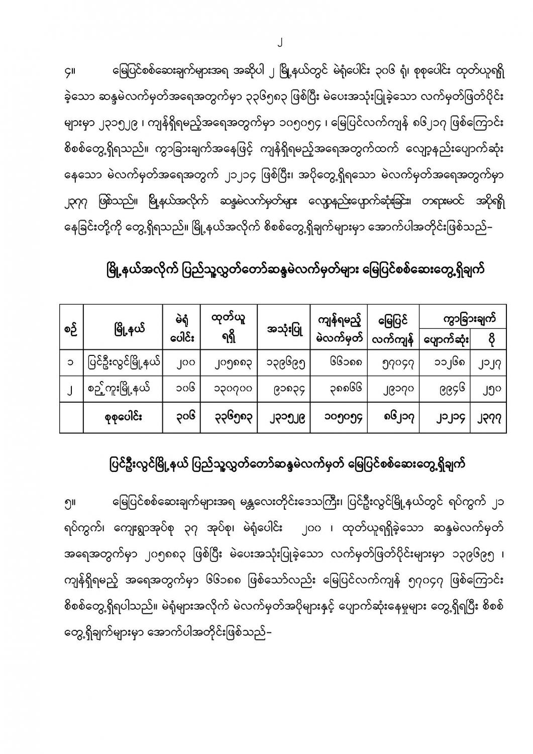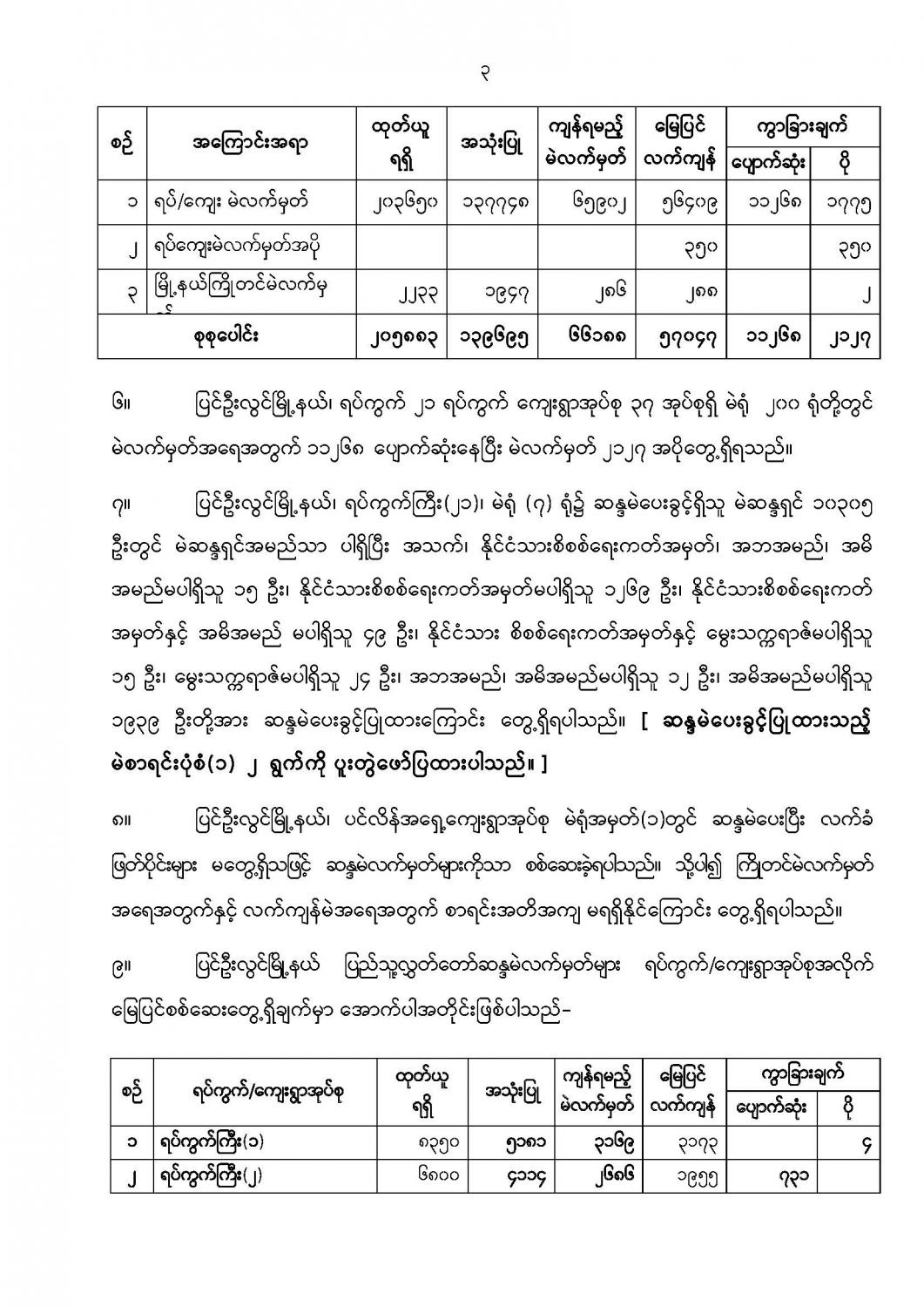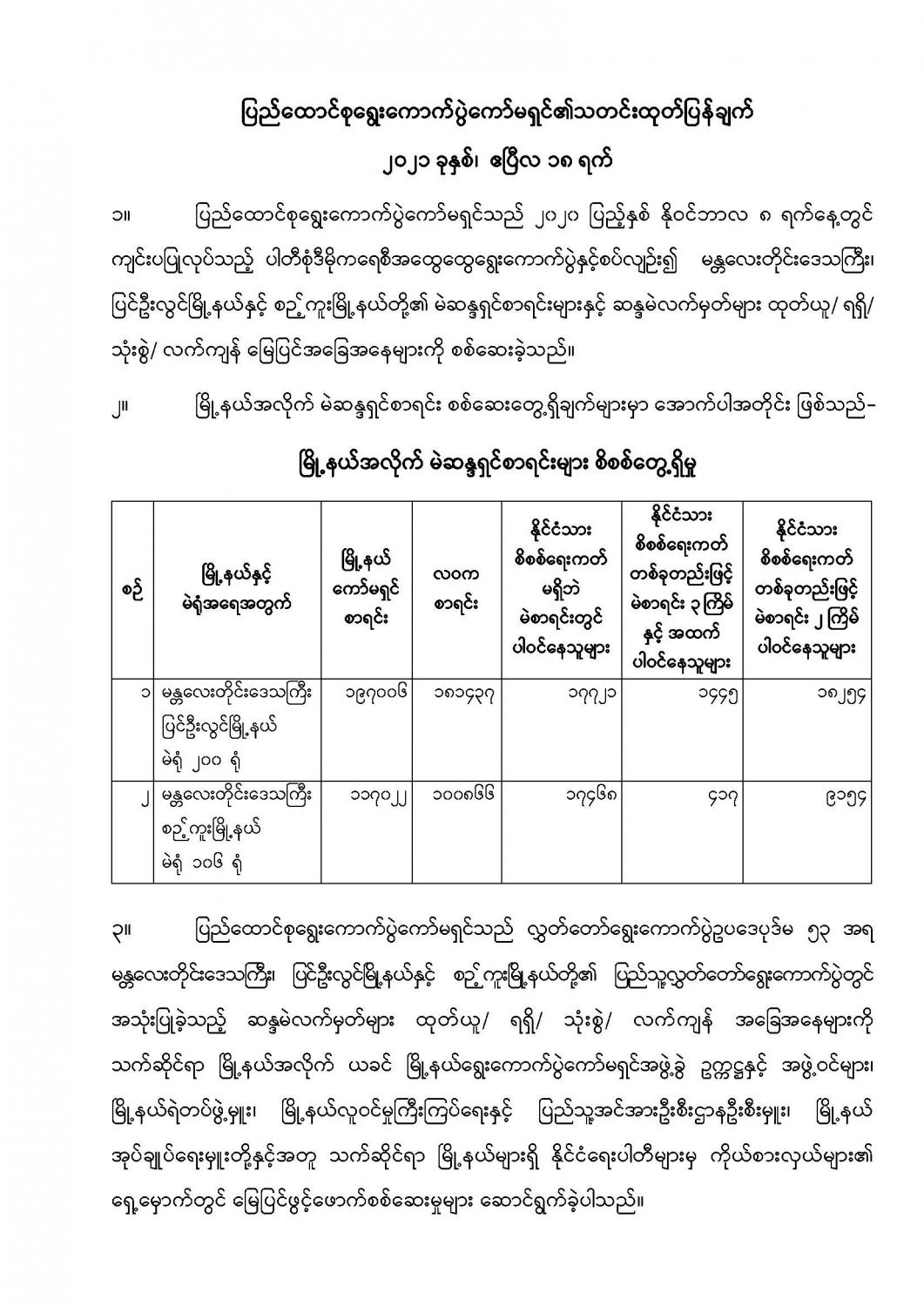 ရန်ကုန်မြို့နှင့် မန္တလေးမြို့အတွက် ရည်ညွှန်းလက်ကားဈေးနှုန်းများနှင့် ပြည်ထောင်စုနယ်မြေ နေပြည်တော်၊ တိုင်းဒေသကြီး/ပြည်နယ် မြို့တော်များအတွက် ရည်ညွှန်းလက်လီဈေးနှုန်းများ