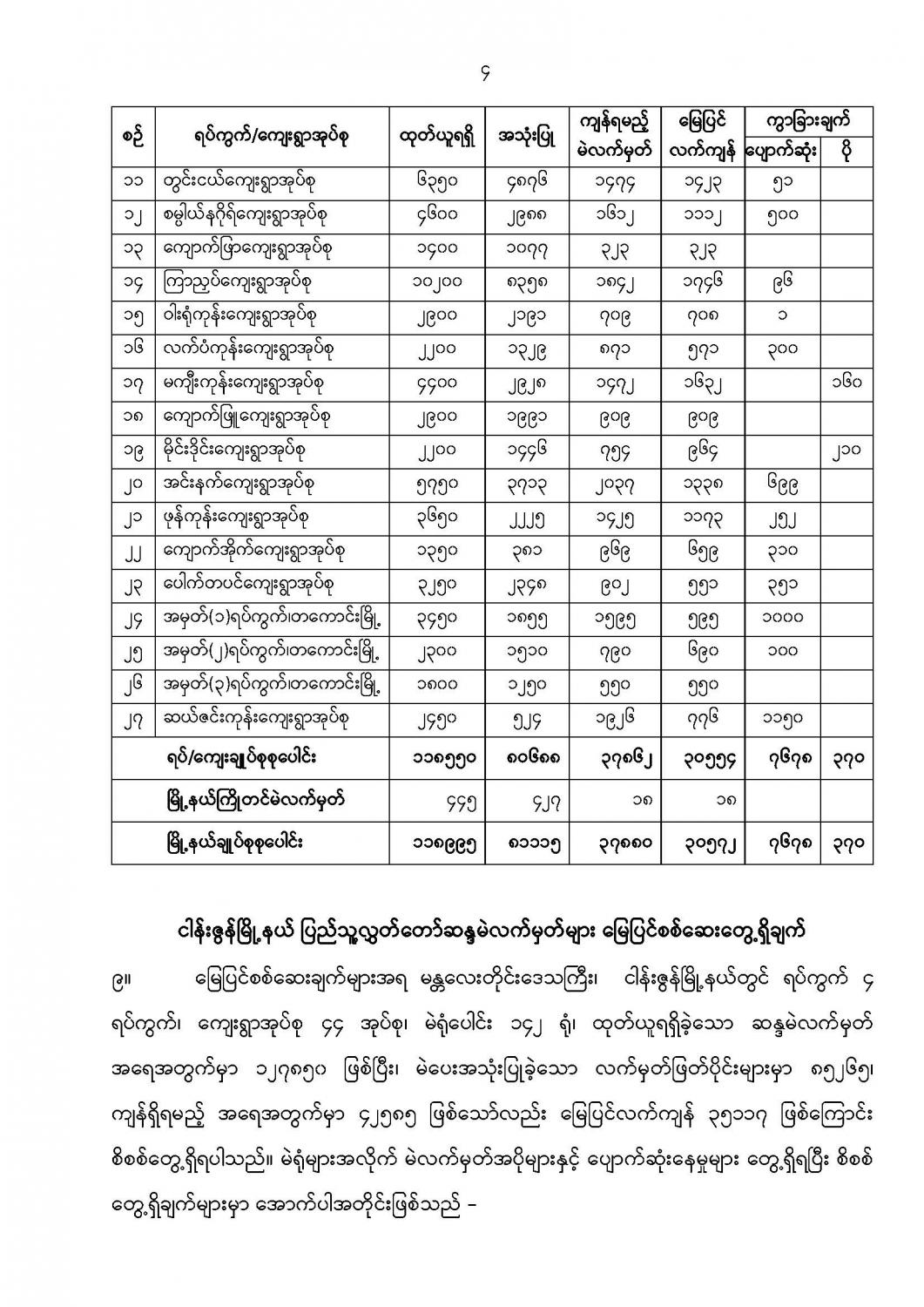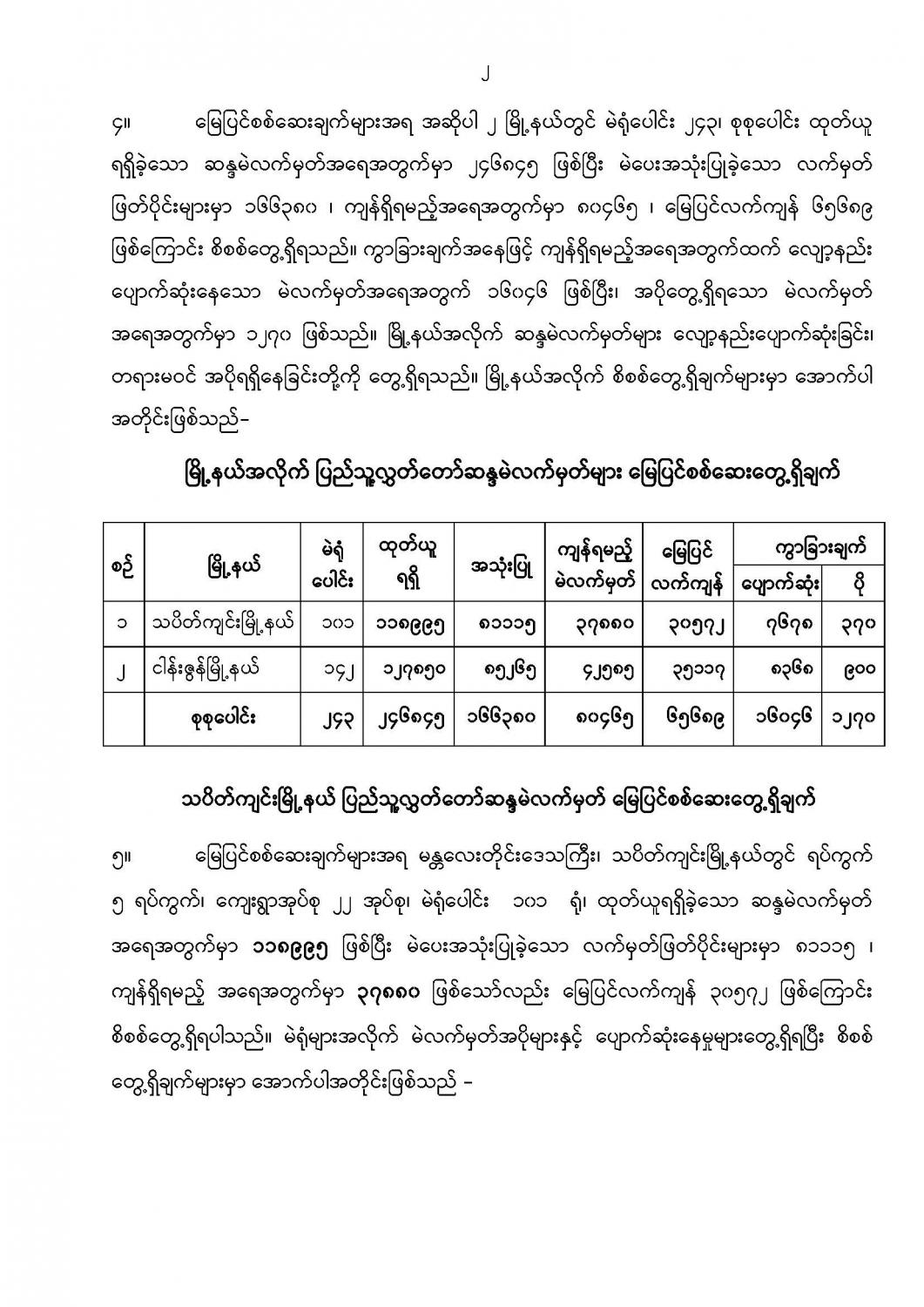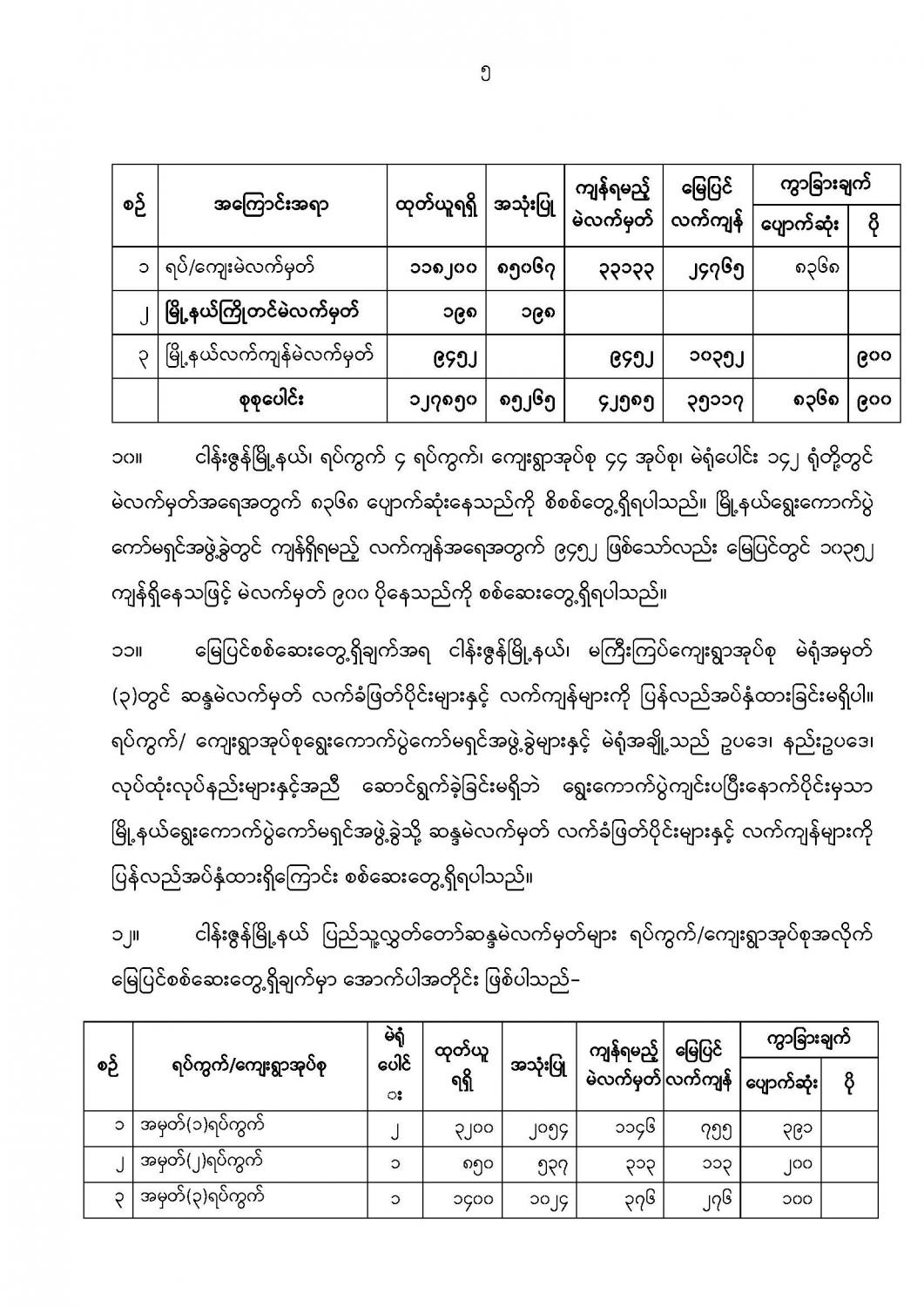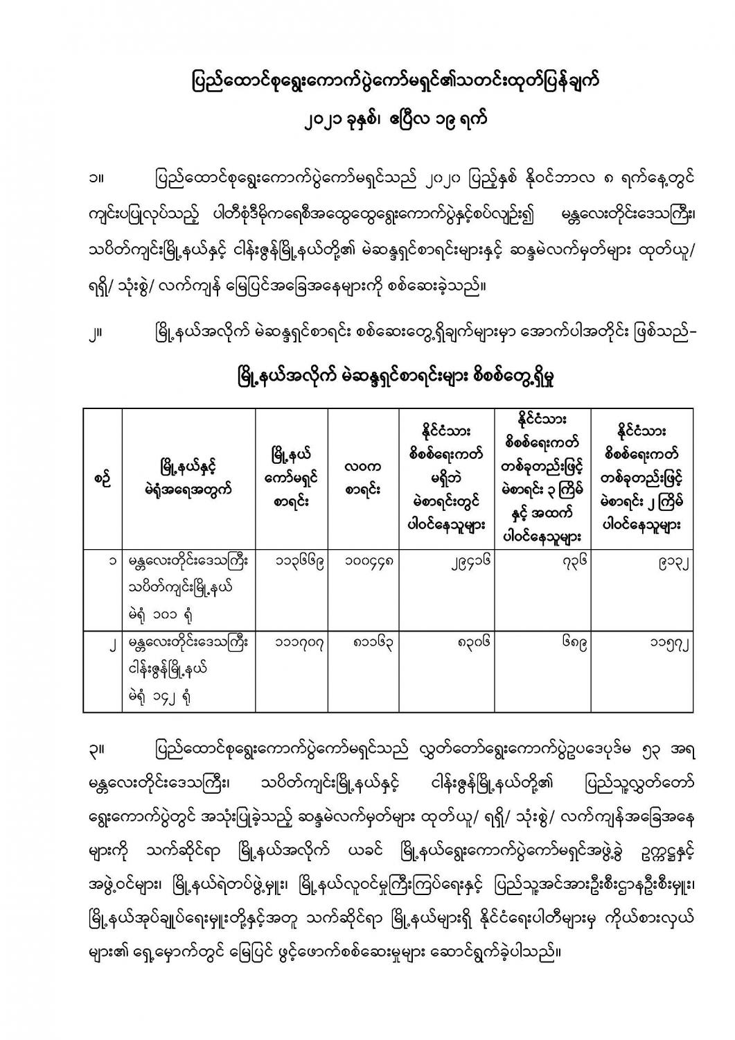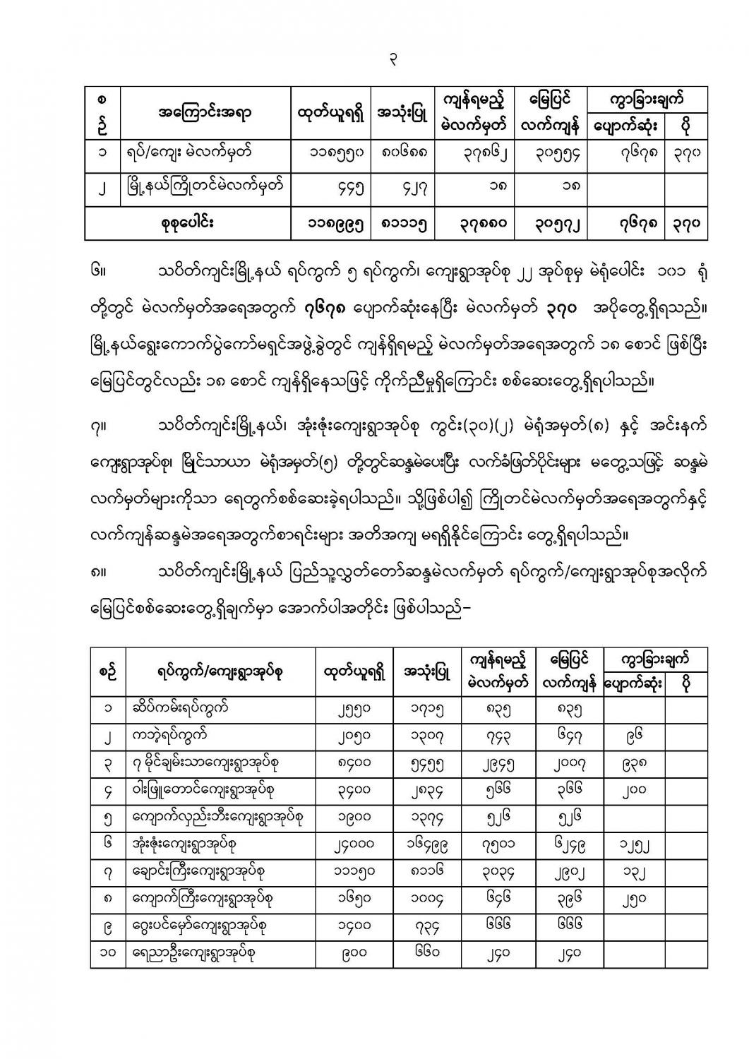 ရန်ကုန်မြို့နှင့် မန္တလေးမြို့အတွက် ရည်ညွှန်းလက်ကားဈေးနှုန်းများနှင့် ပြည်ထောင်စုနယ်မြေ နေပြည်တော်၊ တိုင်းဒေသကြီး/ပြည်နယ် မြို့တော်များအတွက် ရည်ညွှန်းလက်လီဈေးနှုန်းများ