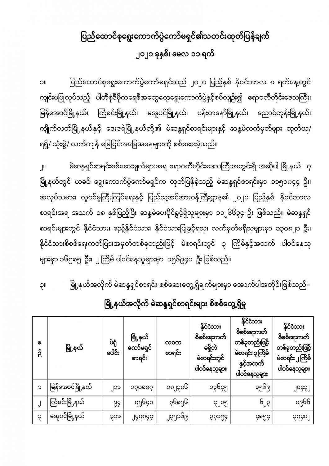 ပြည်ထောင်စုရွေးကောက်ပွဲကော်မရှင်၏သတင်းထုတ်ပြန်ချက် ၂၀၂၁ ခုနှစ်၊ မေလ ၁၁ ရက်