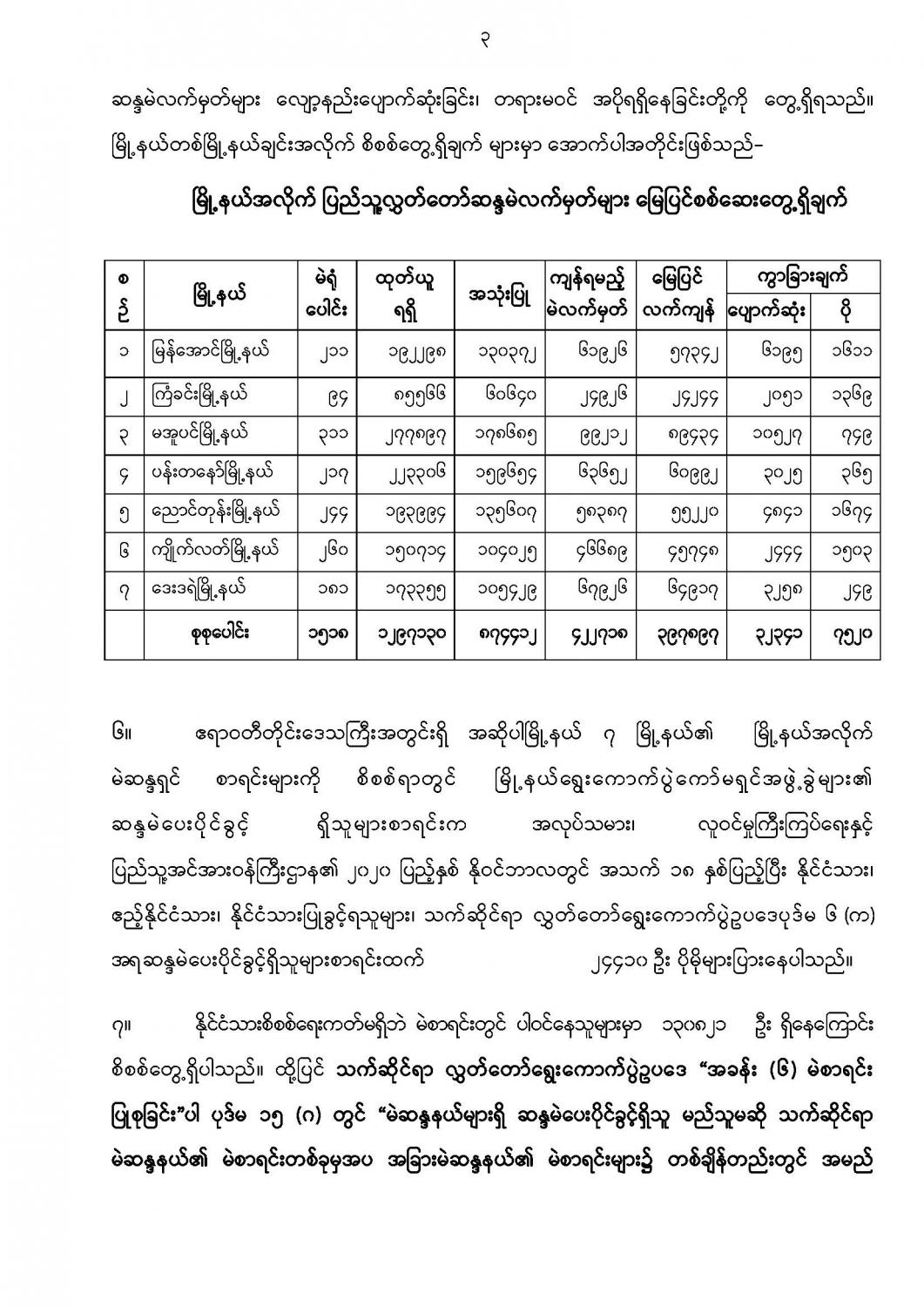 ရန်ကုန်မြို့နှင့် မန္တလေးမြို့အတွက် ရည်ညွှန်းလက်ကားဈေးနှုန်းများနှင့် ပြည်ထောင်စုနယ်မြေ နေပြည်တော်၊ တိုင်းဒေသကြီး/ပြည်နယ် မြို့တော်များအတွက် ရည်ညွှန်းလက်လီဈေးနှုန်းများ