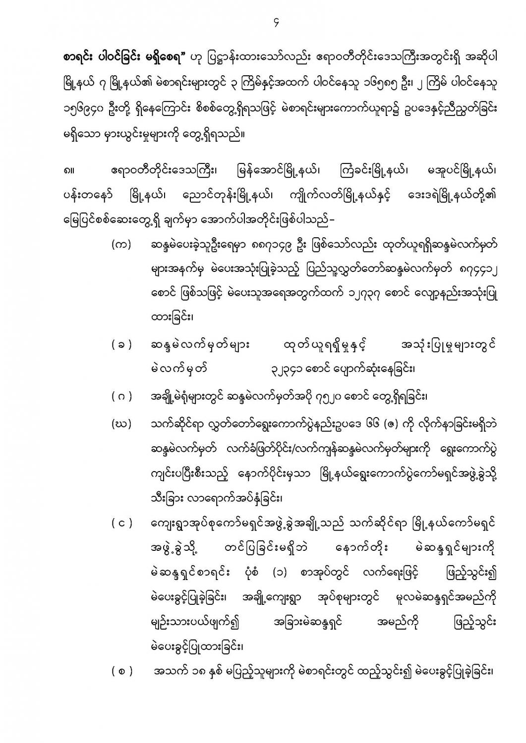ဝန်ကြီးဌာန ကြေညာချက်များ