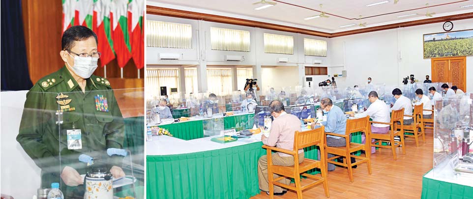 “နိုင်ငံတော်စီမံအုပ်ချုပ်ရေးကောင်စီဥက္ကဋ္ဌက နိုင်ငံတော်စီမံအုပ်ချုပ်ရေးကောင်စီ အစည်းအဝေး (၁၂/၂၀၂၁)၊ စီမံခန့်ခွဲရေးကော်မတီအစည်းအဝေး (၈/၂၀၂၁)၊ စီမံခန့်ခွဲရေးကော်မတီအစည်း အဝေး (၉/၂၀၂၁)တွေကို တက်ရောက်ခဲ့ပြီး နိုင်ငံရေးအခြေအနေ အရပ်ရပ်အပေါ် သုံးသပ်ဆွေးနွေးခဲ့တာ နိုင်ငံရဲ့စီးပွားရေး၊ လူမှုရေး၊ ပညာရေး၊ ကျန်းမာရေးကဏ္ဍအသီးသီး အပေါ်ဆွေးနွေးညှိနှိုင်း အဖြေရှာ ခဲ့တာတွေကို မြင်တွေ့ရပါတယ် ဥပမာ - နိုင်ငံရဲ့ ဘဏ္ဍာနှစ်ပြောင်းလဲသတ်မှတ်နိုင်ဖို့၊ ကျေးလက်ကို အခြေခံတဲ့ စီးပွားရေးလုပ်ငန်းတွေ အလေးပေးဆောင်ရွက်ကြဖို့နဲ့ အခွန်အခများ လျှော့ချနိုင်ဖို့ စတဲ့နိုင်ငံအတွက် အရေးကြီးတဲ့ ဆုံးဖြတ် ချက်တွေကို ချမှတ်ပေးခဲ့ပါတယ်။