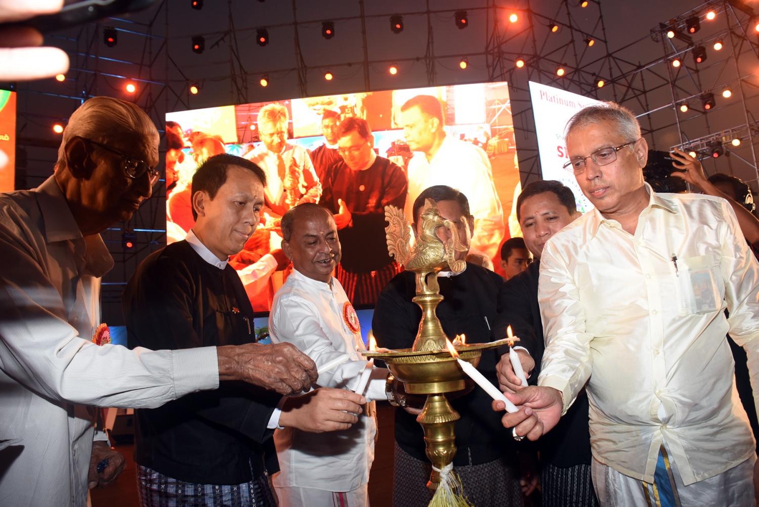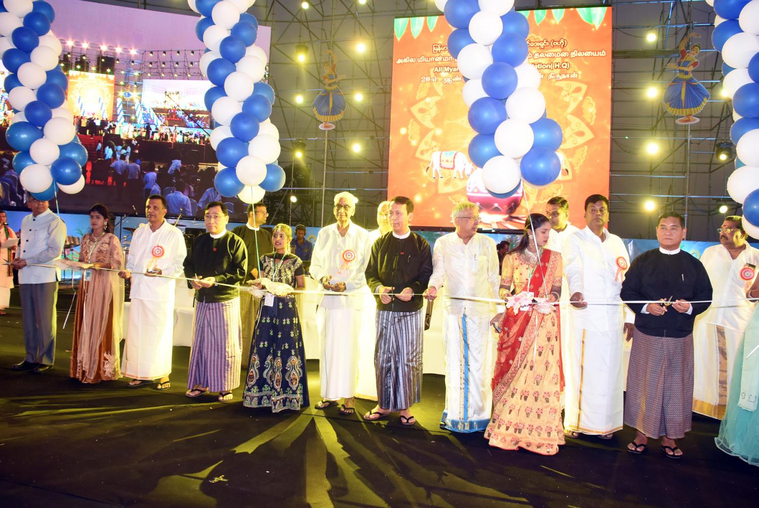ရှေးဦးစွာ လူမှုဝန်ထမ်း၊ ကယ်ဆယ်ရေးနှင့် ပြန်လည်နေရာချထားရေးဝန်ကြီးဌာန ပြည်ထောင်စုဝန်ကြီး ဒေါက်တာ ဝင်းမြတ်အေး၊ ရန်ကုန်တိုင်းဒေသကြီးဝန်ကြီးချုပ် ဦးဖြိုးမင်းသိန်း၊ သာသနာရေးနှင့် ယဉ်ကျေးမှုဝန်ကြီးဌာန ဒုတိယဝန်ကြီး ဦးကြည်မင်း၊ မြန်မာနိုင်ငံဆိုင်ရာနိုင်ငံခြားသံရုံးများမှ သံအမတ်ကြီးများ၊  မြန်မာနိုင်ငံလုံးဆိုင်ရာ တမီလ် ဟိန္ဒူဖောင်ဒေးရှင်း(ဗဟို) ဂုဏ်ထူး ဆောင် နာယက ဦးအောင်ဆန်းနှင့် နာယက များ၊ ဥက္ကဋ္ဌ ဦးသိန်းလွင်နှင့် တာဝန်ရှိသူများက အခမ်းအနားကို ဖဲကြိုးဖြတ် ဖွင့်လှစ်ပေးပြီး၊ ဆီမီးထွန်းညှိ၍ အခမ်းအနားကို စတင်သည်။