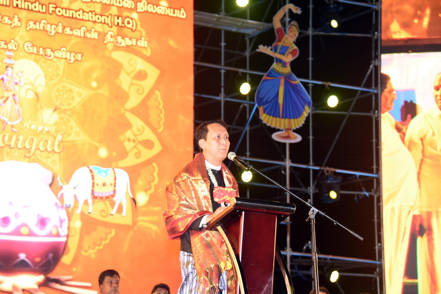 ဆက်လက်၍ မြန်မာနိုင်ငံလုံးဆိုင်ရာ တမီလ်ဟိန္ဒူဖောင်ဒေးရှင်း အထွေထွေ အတွင်းရေးမှူး ဦးချစ်ဝင်းက တမီလ်ဘာသာဖြင့် အသင်း၏ လုပ်ဆောင်ချက်များကို ရှင်းလင်းတင်ပြသည်။