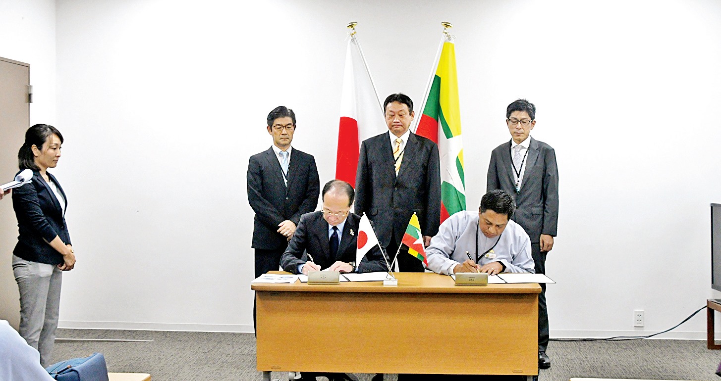 မန္တလေးမြို့တော် အမှိုက်သိမ်း စနစ် တိုးတက်ရေးအတွက် အထောက် အပံ့ပေးရေး သဘောတူစာချုပ်ကို မြန်မာနိုင်ငံဆိုင်ရာ ဂျပန်သံအမတ်ကြီး မစ္စတာအိချိရော့မာရုယာမနှင့် မန္တလေးမြို့ ဒုတိယမြို့တော်ဝန် ဦးရဲမွန်တို့က လက်မှတ်ရေးထိုး ကြသည်။