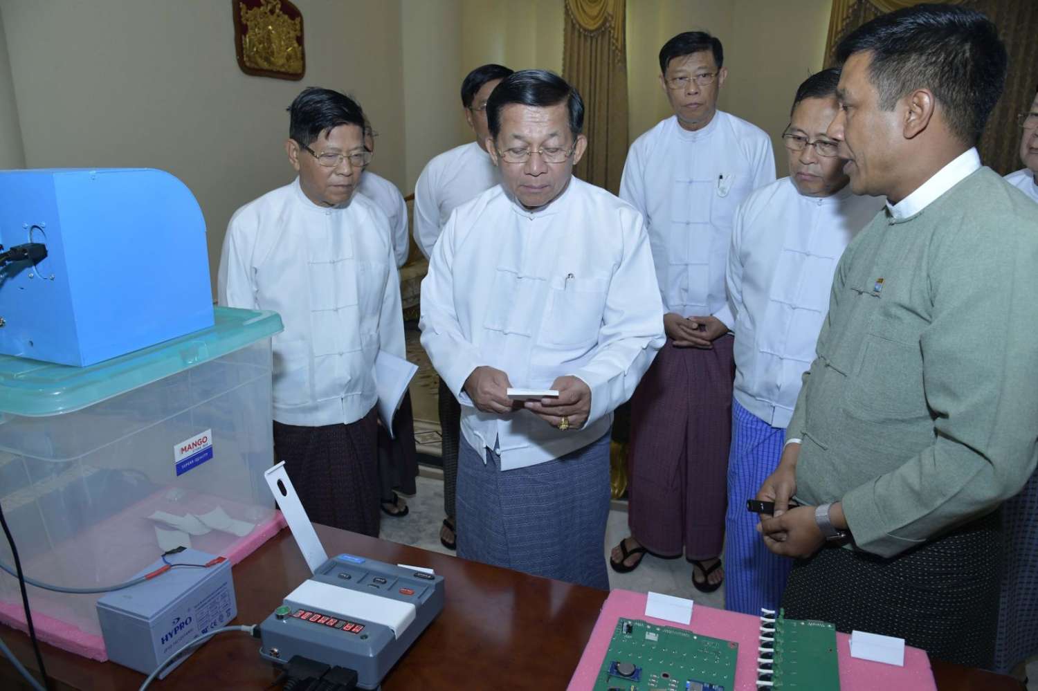 ထို့နောက် နိုင်ငံတော်စီမံအုပ်ချုပ်ရေးကောင်စီဥက္ကဋ္ဌ နိုင်ငံတော်ဝန်ကြီးချုပ်နှင့် တက်ရောက်လာကြသူများသည် စမ်းသပ်တည်ဆောက်ထားသည့် Myanmar Electronic Voting Maching (MEVM) ဖြင့် စမ်းသပ်မဲပေးမှုကိုကြည်ရှုကြပြီး နိုင်ငံတော်စီမံအုပ်ချုပ်ရေးကောင်စီဥက္ကဋ္ဌ နိုင်ငံတော်ဝန်ကြီးချုပ်က လိုအပ်သည်များကို လမ်းညွှန်မှာကြားခဲ့ကြောင်း သတင်းရရှိသည်။