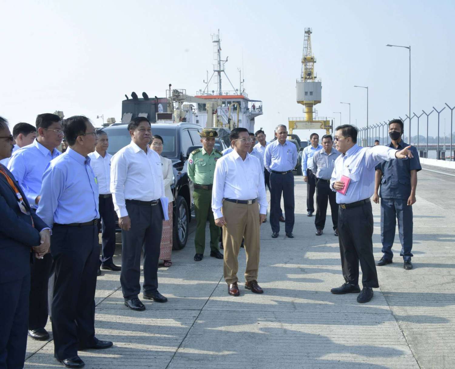 နိုင်ငံတော်စီမံအုပ်ချုပ်ရေးကောင်စီဥက္ကဋ္ဌ နိုင်ငံတော်ဝန်ကြီးချုပ် ဗိုလ်ချုပ်မှူးကြီးမင်းအောင်လှိုင်သည် ယနေ့နံနက်ပိုင်းတွင် ခရီးစဉ်တွင်လိုက်ပါလာသည့် အဖွဲ့ဝင်များ၊ ရခိုင်ပြည်နယ်ဝန်ကြီးချုပ် ဦးထိန်လင်း၊ အနောက်ပိုင်းတိုင်းစစ်ဌာနချုပ် တိုင်းမှူး ဗိုလ်ချုပ်ထင်လတ်ဦးနှင့် တာဝန်ရှိသူများလိုက်ပါပြီး ရခိုင်ပြည်နယ်၊ စစ်တွေမြို့ရှိ ကုလားတန်မြစ်ကြောင်း ဘက်စုံသုံးဖြတ်သန်းသယ်ယူပို့ဆောင်ရေးစီမံကိန်း အကောင်အထည်ဖော်ဆောင်ရွက်နေမှုအခြေအနေများကို သွားရောက်ကြည့်ရှုစစ်ဆေးသည်။