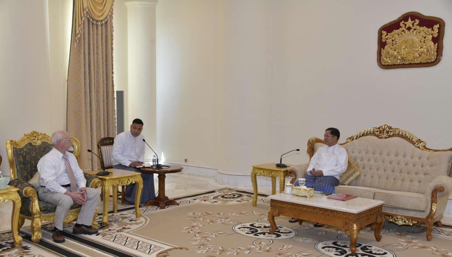 နိုင်ငံတော်စီမံအုပ်ချုပ်ရေးကောင်စီဥက္ကဋ္ဌ နိုင်ငံတော်ဝန်ကြီးချုပ် ဗိုလ်ချုပ်မှူးကြီးမင်းအောင်လှိုင်ထံ ရုရှား-မြန်မာ ချစ်ကြည်ရေးနှင့် ပူးပေါင်းဆောင်ရွက်ရေးအသင်း ဒုတိယဥက္ကဋ္ဌ Mr.Anatoly. Bulochnikov ဦးဆောင်သော ကိုယ်စားလှယ်အဖွဲ့က ယနေ့မွန်းလွဲပိုင်းတွင် နေပြည်တော်ရှိ နိုင်ငံတော်စီမံအုပ်ချုပ်ရေးကောင်စီဥက္ကဋ္ဌရုံး၊ ဧည့်ခန်းမ၌ လာရောက်ဂါရဝပြုတွေ့ဆုံသည်။