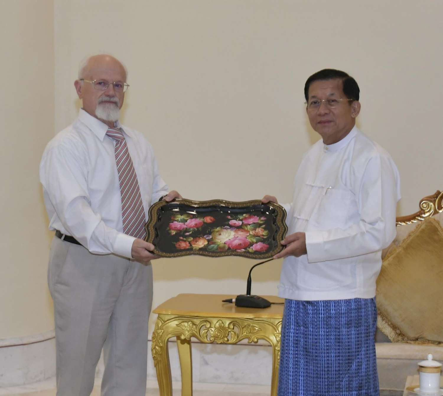 တွေ့ဆုံပွဲအပြီးတွင် နိုင်ငံတော်စီမံအုပ်ချုပ်ရေးကောင်စီဥက္ကဋ္ဌ နိုင်ငံတော်ဝန်ကြီးချုပ်နှင့် ရုရှား-မြန်မာချစ်ကြည်ရေးနှင့် ပူးပေါင်းဆောင်ရွက်ရေးအသင်းဒုတိယဥက္ကဋ္ဌတို့သည် အမှတ်တရလက်ဆောင်ပစ္စည်းများ အပြန်အလှန်ပေးအပ်ကြပြီး မှတ်တမ်းတင်ဓာတ်ပုံရိုက်ခဲ့ကြသည်။