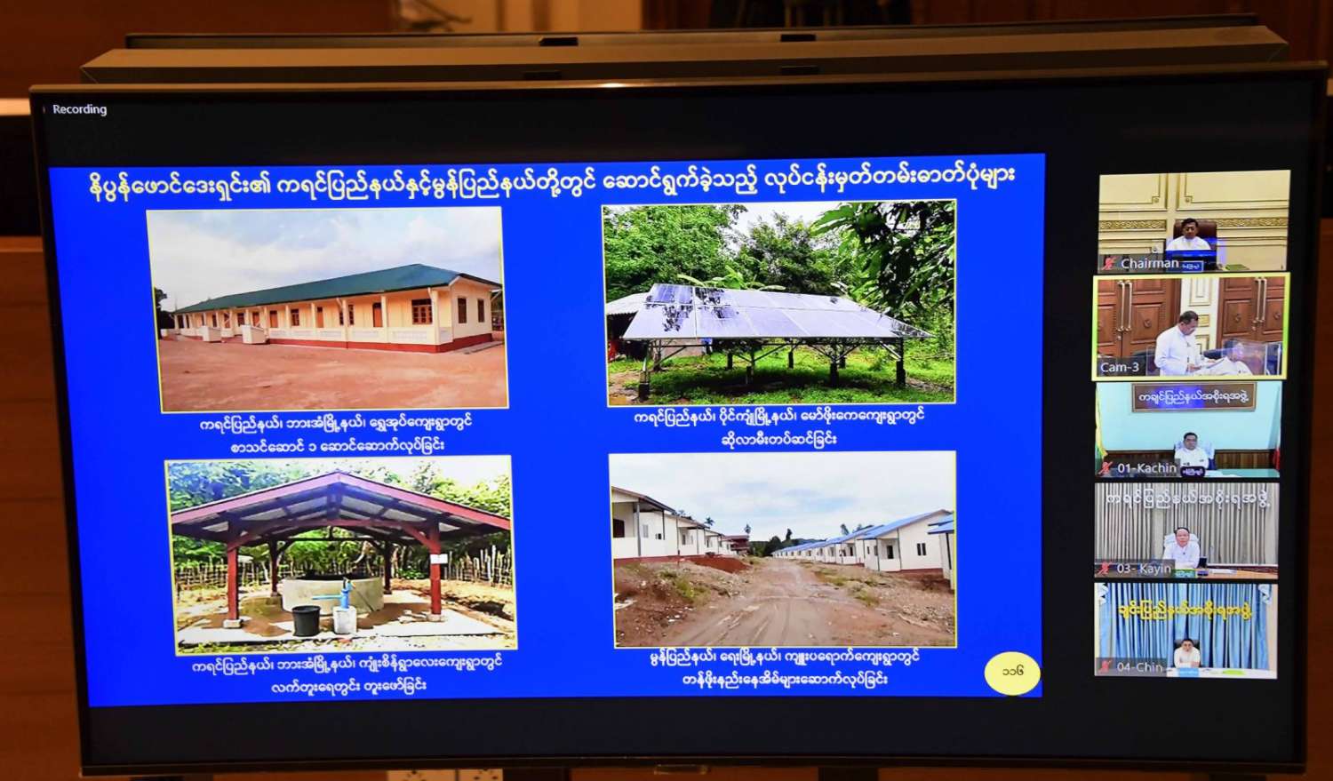 နိုင်ငံတော်စီမံအုပ်ချုပ်ရေးကောင်စီ တာဝန်ယူချိန်မှစပြီး တိုင်းပြည်သာယာဝပြောရေးနှင့် စားရေရိက္ခာဖူလုံရေး၊ ပြည်သူလူထုတစ်ရပ်လုံးလူမှုစီးပွားဘဝဖွံ့ဖြိုး တိုးတက်စေရေး၊ တစ်နိုင်ငံလုံး ထာဝရငြိမ်းချမ်းရေးရရှိရေး၊ ပြည်ထောင်စုတစ်ဝန်းလမ်းပန်းဆက်သွယ်မှုလုံခြုံချောမွေ့စေရေးတို့ကို အလေးထားပြီး အကောင်အထည်ဖော်ဆောင်ရွက်လျက်ရှိပါကြောင်း၊ နယ်စပ်ဒေသများ၏ ဖွံ့ဖြိုးတိုးတက်ရေးလုပ်ငန်းများဖြစ်သည့် ပညာရေး၊ ကျန်းမာရေး၊ လမ်းပန်းဆက်သွယ်ရေး၊ စိုက်ပျိုး/မွေးမြူရေးနှင့် စီးပွားရေးကဏ္ဍများ တိုးတက်လာစေရန်အတွက် လူမှုစီးပွားဘဝအခြေခံအဆောက်အအုံများနှင့် လူ့စွမ်းအားအရင်းအမြစ် ဖွံ့ဖြိုးတိုးတက်ရေးလုပ်ငန်းစဉ်များအပြင် မူးယစ်ဆေးဝါးပပျောက်ရေးအတွက်လည်း စီမံကိန်းများရေးဆွဲအကောင်အထည်ဖော် ဆောင်ရွက်လျက်ရှိပါကြောင်း။