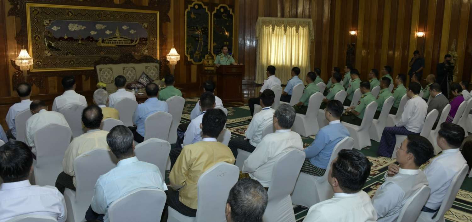 ဦးစွာ နိုင်ငံတော်စီမံအုပ်ချုပ်ရေးကောင်စီဥက္ကဋ္ဌ နိုင်ငံတော်ဝန်ကြီးချုပ်က မုန်တိုင်းဒဏ်သင့်ခဲ့ရသည့် ဒေသများ၌ ကူညီကယ်ဆယ်ရေးလုပ်ငန်းများ ဆောင်ရွက်နေမှုနှင့် ပြန်လည်ထူထောင်ရေးလုပ်ငန်းများ ဆောင်ရွက်နိုင်ရေး စီမံဆောင်ရွက်လျက်ရှိမှုတို့နှင့် ပတ်သက်၍ ပြောကြားရာတွင် ဆိုင်ကလုန်းမုန်တိုင်း "မိုခါ" (MOCHA) ကြောင့် ရခိုင်ပြည်နယ်အတွင်းထိခိုက်ပျက်ဆီးခဲ့ရသည့် ပျက်စီးဆုံးရှုံးမှုများနှင့် မုန်တိုင်းတိုက်ခိုက်မှုကြောင့် ထိခိုက်ခဲ့ရသည့် ချင်းပြည်နယ်၊ စစ်ကိုင်းတိုင်းဒေသကြီးနှင့် ဧရာဝတီတိုင်းဒေသကြီးအတွင်းရှိ အချို့ဒေသများမှ ထိခိုက်ပျက်စီးဆုံးရှုံးခဲ့မှုများအတွက် နိုင်ငံတော်မှဦးဆောင်၍ ဆောင်ရွက်သည့် ပြန်လည်ကယ်ဆယ်ရေးနှင့် ထူထောင်ရေးလုပ်ငန်းများတွင် ယခုကဲ့သို့တစ်တပ်တစ်အား ပါဝင်လှူဒါန်းကြသည့်အတွက် ဝမ်းမြောက်ပါကြောင်း။