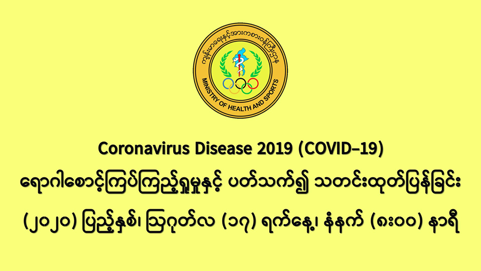 • COVID-19 ရောဂါ ဓာတ်ခွဲအတည်ပြုလူနာသစ် မတွေ့ရှိပါ။