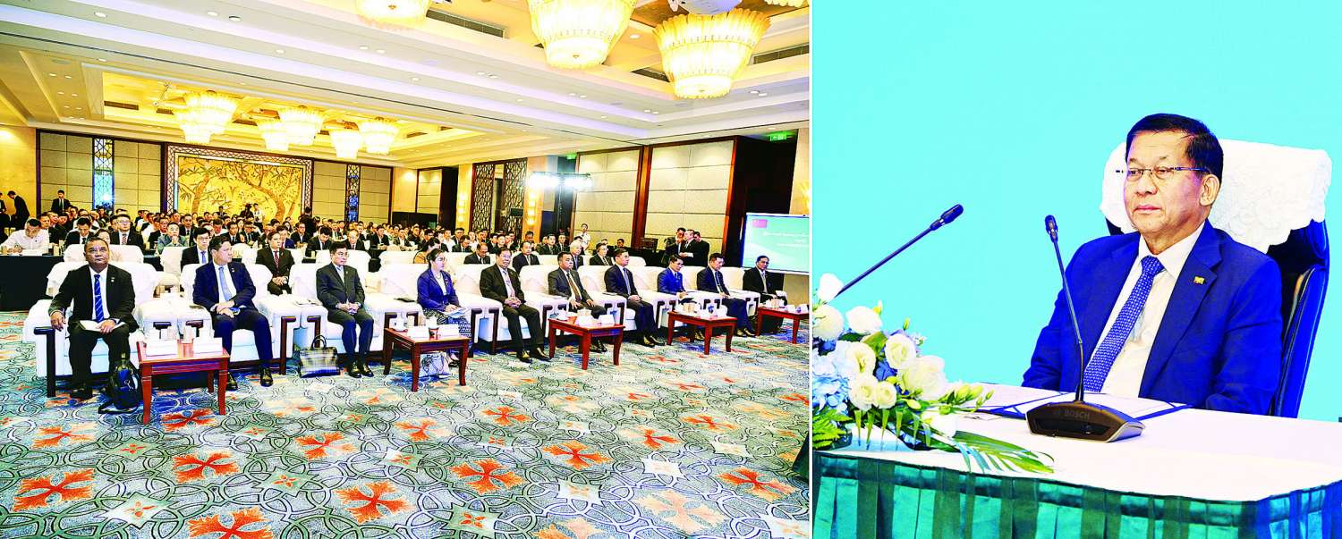 တရုတ်နိုင်ငံက ကြီးမှူးဆောင်ရွက်နေသည့် ကမ္ဘာလုံးဆိုင်ရာဖွံ့ဖြိုးတိုးတက်မှု ဦးဆောင်ဦးရွက်ပြုမှုအစီအစဉ် (Global Development Initiatives - GDI) တွင် ပါဝင်သည့် ဦးစားပေးနယ်ပယ်ရှစ်ခုတွင် မြန်မာနိုင်ငံနှင့် ကိုက်ညီသည့် ကဏ္ဍများစွာ ပါဝင်နေသောကြောင့် မိမိတို့မြန်မာနိုင်ငံသည် စီးပွားရေးလုပ်ငန်းရှင်များအနေဖြင့် ရင်းနှီးမြှုပ်နှံမှုများ ဆောင်ရွက်ရန် အခွင့်အလမ်းများစွာရှိသည့် နိုင်ငံတစ်နိုင်ငံဖြစ်ကြောင်း၊ မိမိတို့အနေဖြင့် တရုတ် မိတ်ဖက်စီးပွားရေးလုပ်ငန်းရှင်များ မြန်မာနိုင်ငံတွင် လုပ်ငန်းလည်ပတ်လုပ်ဆောင်ရာတွင် လွယ်ကူချောမွေ့စေရန်ရည်ရွယ်၍ ကုန်သွယ်မှု၊ နယ်စပ်ငွေလွှဲပြောင်းပေးချေမှုနှင့် ရင်းနှီးမြှုပ်နှံမှုများ ပြုလုပ် ရာတွင် ယွမ် - ကျပ် တိုက်ရိုက်ငွေပေးချေမှုစနစ်ကို အကောင်အထည်ဖော်ဆောင်ရွက်လျက်ရှိကြောင်း၊ မိမိတို့အနေဖြင့် နှစ်နိုင်ငံအကြား နယ်စပ်ကုန်သွယ်ရေးဂိတ်များမှတစ်ဆင့် ကုန်သွယ်မှုနှင့် ရင်းနှီးမြှုပ်နှံမှုတို့ကို ယခုထက်ပိုမိုတိုးမြှင့်သွားလိုကြောင်း၊ ထို့ကြောင့် မိမိတို့၏ မိတ်ဖက်စီးပွားရေးလုပ်ငန်းရှင် များအတွက် အကျိုးခံစားခွင့်များနှင့် အခွန်ကင်းလွတ်သက်သာခွင့်များကို သိသာစွာ ပံ့ပိုးပေးထားသည့်အပြင် မြန်မာနိုင်ငံသို့ လာရောက်ရင်းနှီးမြှုပ်နှံကြသူများ၊ ကုန်သွယ်မှုဆောင်ရွက်သူများအတွက် နစ်နာမှု မရှိစေရေးအတွက်လည်း ကြိုးပမ်းဆောင်ရွက်ပေး သွားမည်ဖြစ်ကြောင်း၊ ထို့အပြင် မြန်မာ-တရုတ် နှစ်နိုင်ငံအကြား ရင်းနှီးမြှုပ်နှံမှုများဖွံ့ဖြိုး တိုးတက်ရေးအတွက် မြန်မာ-တရုတ် စီးပွားရေးလုပ်ငန်းရှင်များပူးပေါင်းဆောင်ရွက်ရေးအဖွဲ့ ဖွဲ့စည်း၍ လုပ်ငန်းများ မြန်ဆန်စွာဖွံ့ဖြိုးတိုးတက်စေရေး အကောင်အထည်ဖော်ဆောင်ရွက်သွားရန် လိုအပ်ကြောင်း၊ တရုတ်စီးပွားရေးလုပ်ငန်းရှင်များ မြန်မာနိုင်ငံတွင် ရင်းနှီးမြှုပ်နှံမှုအဆင်ပြေစေရေး ယွမ်နှင့် တိုက်ရိုက်ရင်းနှီးမြှုပ်နှံနိုင်ရေး စဉ်းစားဆောင်ရွက်နေပြီး မကြာမီအချိန်အတွင်း အဖြေပေးနိုင်လိမ့်မည်ဖြစ်ကြောင်း။