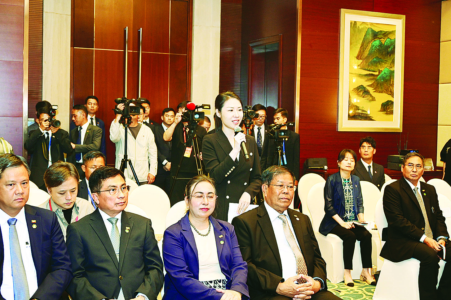 မေး။ ကျွန်မကတော့ ဆင်ဟွာသတင်းဌာနမှ ဖြစ်ပါတယ်။ ကျွန်မမေးချင်တာက နှစ်ချက်ရှိပါတယ်။ နံပါတ်တစ်က မြန်မာနိုင်ငံဟာ ရှန်ဟိုင်း SCO မိတ်ဖက်နိုင်ငံဖြစ်ပါတယ်။ အဆွေတော်ဟာဆိုရင် ကျွန်မတို့သမ္မတကြီးရဲ့ဖိတ်ခေါ်မှုနဲ့အတူ တီယန်ကျင်းမြို့မှာဆောင်ရွက်ခဲ့တဲ့ SCO Plus အစည်းအဝေးကို တက်ရောက်ခဲ့ပါတယ်။ အစည်းအဝေးမှာလည်း ကျွန်မတို့ရဲ့သမ္မတကြီးက Global Governance Initiative (GGI)ကိုပြောခဲ့ပါတယ်။ ဒါနဲ့ပတ်သက်ပြီးတော့ အဆွေတော်ဟာ သမ္မတကြီး ရှီကျင့်ဖျင်အဆိုပြုခဲ့တဲ့ အစီအမံနဲ့ပတ်သက်ပြီး ဘယ်လိုသဘောထားရှိပါသလဲ။ ပြီးတော့ အဲဒီအစီ အမံဟာ လက်ရှိကမ္ဘာကြီးမှာ ဘယ်လိုဟာမျိုးတွေသက်ရောက်မှုရှိပါသလဲ။ ဒါဟာ နံပါတ်တစ်မေးခွန်း ပါ။ နံပါတ်နှစ်မေးခွန်းဟာဆိုရင် ယခုနှစ်ဟာ တရုတ်-မြန်မာ သံတမန်ဆက်ဆံရေး ၇၅ နှစ် မြောက်ဖြစ်ခဲ့ပါပြီ။ သမ္မတကြီး ရှီကျင့်ဖျင်က တီယန်ကျင်းမှာ သမ္မတကြီးနဲ့ တွေ့ဆုံစဉ်မှာတော့ တရုတ်-မြန်မာဆက်ဆံရေးဟာ ဆွေမျိုးပေါက်ဖော်ဆက်ဆံရေးဖြစ်ပြီး ပြည်သူများမှပေါက်ဖွားလာတဲ့ သမိုင်းကြောင်းရှည်လျားတဲ့ ဆက်ဆံရေးဖြစ်ပါတယ်။ နှစ်ဖက်လုံးဟာဆိုရင်တော့ တရုတ်-မြန်မာ သံတမန်ဆက်ဆံရေး ၇၅ နှစ်အပေါ်မှာ မူတည်ပြီး နက်ရှိုင်းစွာ မဟာဗျူဟာပူးပေါင်းဆောင်ရွက်လျက်ရှိပါတယ်။ တရုတ်-မြန်မာ အေးအတူပူအမျှ အသိုက်အဝန်း တည်ဆောက်မှုကိုလည်း တွန်းအားပေးလျက်ရှိပြီး နှစ်နိုင်ငံပြည်သူများကိုလည်း သာယာဝပြောပြီး သုခများကိုလည်း သယ်ဆောင်လာတဲ့အတွက် ကျွန်မ မေးခွန်းကတော့ လက်ရှိအဆွေတော်အနေနဲ့ တရုတ်- မြန်မာနှစ်နိုင်ငံ ဆက်ဆံရေးဖွံ့ဖြိုးတိုးတက်မှုနဲ့ ပတ်သက်ပြီး ဘယ်လို Comment ပေးလိုပါ သလဲ။