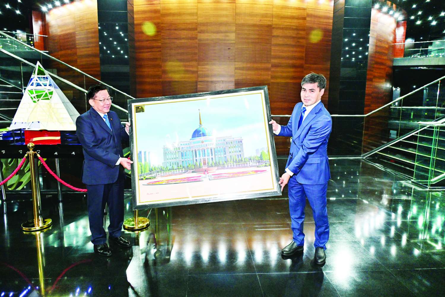 ထို့နောက် နိုင်ငံတော်ယာယီသမ္မတ နိုင်ငံတော်လုံခြုံရေးနှင့် အေးချမ်းသာယာရေးကော်မရှင်ဥက္ကဋ္ဌနှင့် ပြတိုက်မှ အထွေထွေရေးရာ ဒုတိယညွှန်ကြားရေးမှူး Mr. Sairan Temirgalievich ၊ မြို့ပြစီမအုပ်ချုပ်ရေးအဖွဲ့မှ Mr. Smogulov Nurasyl တို့သည် အမှတ်တရလက်ဆောင်ပစ္စည်း အပြန်အလှန်ပေးအပ်ခဲ့ကြကြောင်း သတင်းရရှိသည်။