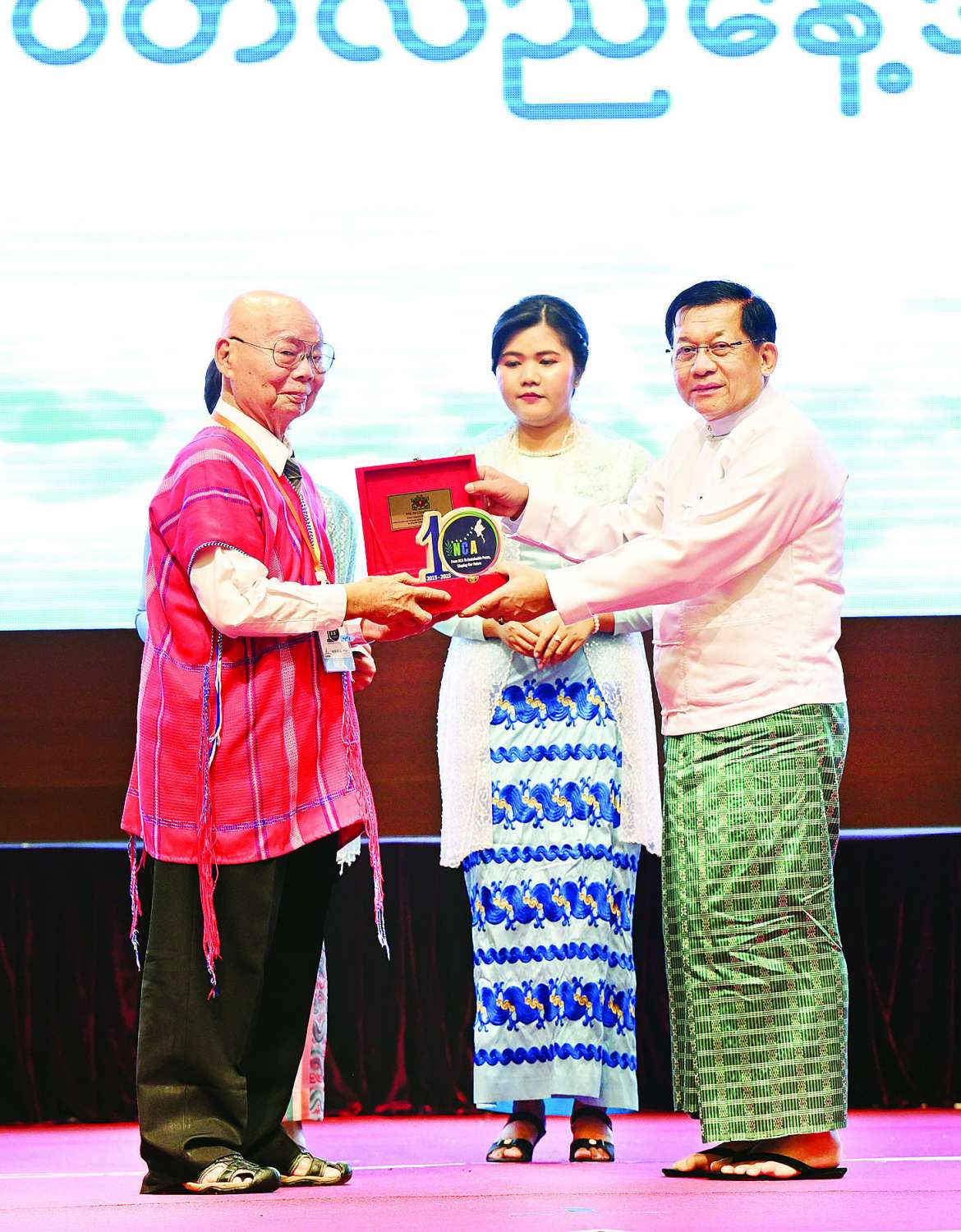 ယင်းနောက် နိုင်ငံတော်ယာယီသမ္မတ နိုင်ငံတော်လုံခြုံရေးနှင့် အေးချမ်းသာယာရေးကော်မရှင် ဥက္ကဋ္ဌ အမျိုးသားစည်းလုံးညီညွတ်ရေးနှင့် ငြိမ်းချမ်းရေးဖော်ဆောင်မှုဗဟိုကော်မတီ ဥက္ကဋ္ဌ ဗိုလ်ချုပ်မှူးကြီး မင်းအောင်လှိုင်သည် ပြန်ကြားရေးဝန်ကြီးဌာန မြန်မာ့အသံနှင့်ရုပ်မြင်သံကြား၊ သာသနာရေးနှင့်ယဉ်ကျေးမှုဝန်ကြီးဌာန၊ အနုပညာဦးစီးဌာနတို့မှ အကအဖွဲ့များနှင့် တိုင်းရင်းသားအကအဖွဲ့များကို “ငြိမ်းချမ်းရေးဂုဏ်ပြုပန်းခြင်း” နှင့် ဂုဏ်ပြုချီးမြှင့်ငွေ သိန်း ၁၀၀၀ အား ပေးအပ်ချီးမြှင့်ပြီး တိုင်းရင်းသားအကအဖွဲ့များနှင့်အတူ စုပေါင်းမှတ်တမ်းတင်ဓာတ်ပုံရိုက်ကူးကြသည်။ အခမ်းအနားအပြီးတွင် နိုင်ငံတော်ယာယီသမ္မတ နိုင်ငံတော်လုံခြုံရေးနှင့် အေးချမ်းသာယာရေးကော်မရှင် ဥက္ကဋ္ဌ အမျိုးသားစည်းလုံးညီညွတ်ရေးနှင့် ငြိမ်းချမ်းရေးဖော်ဆောင်မှု ဗဟိုကော်မတီ ဥက္ကဋ္ဌ ဗိုလ်ချုပ်မှူးကြီး မင်းအောင်လှိုင်သည် တစ်နိုင်ငံလုံး ပစ်ခတ်တိုက်ခိုက်မှုရပ်စဲရေး သဘောတူစာချုပ် (NCA) (၁၀)နှစ်ပြည့် နှစ်ပတ်လည်နေ့ အခမ်းအနားသို့ တက်ရောက်လာကြသူများကို ဂုဏ်ပြုနေ့လယ်စာဖြင့် တည်ခင်းဧည့်ခံခဲ့ကြောင်း သတင်းရရှိသည်။