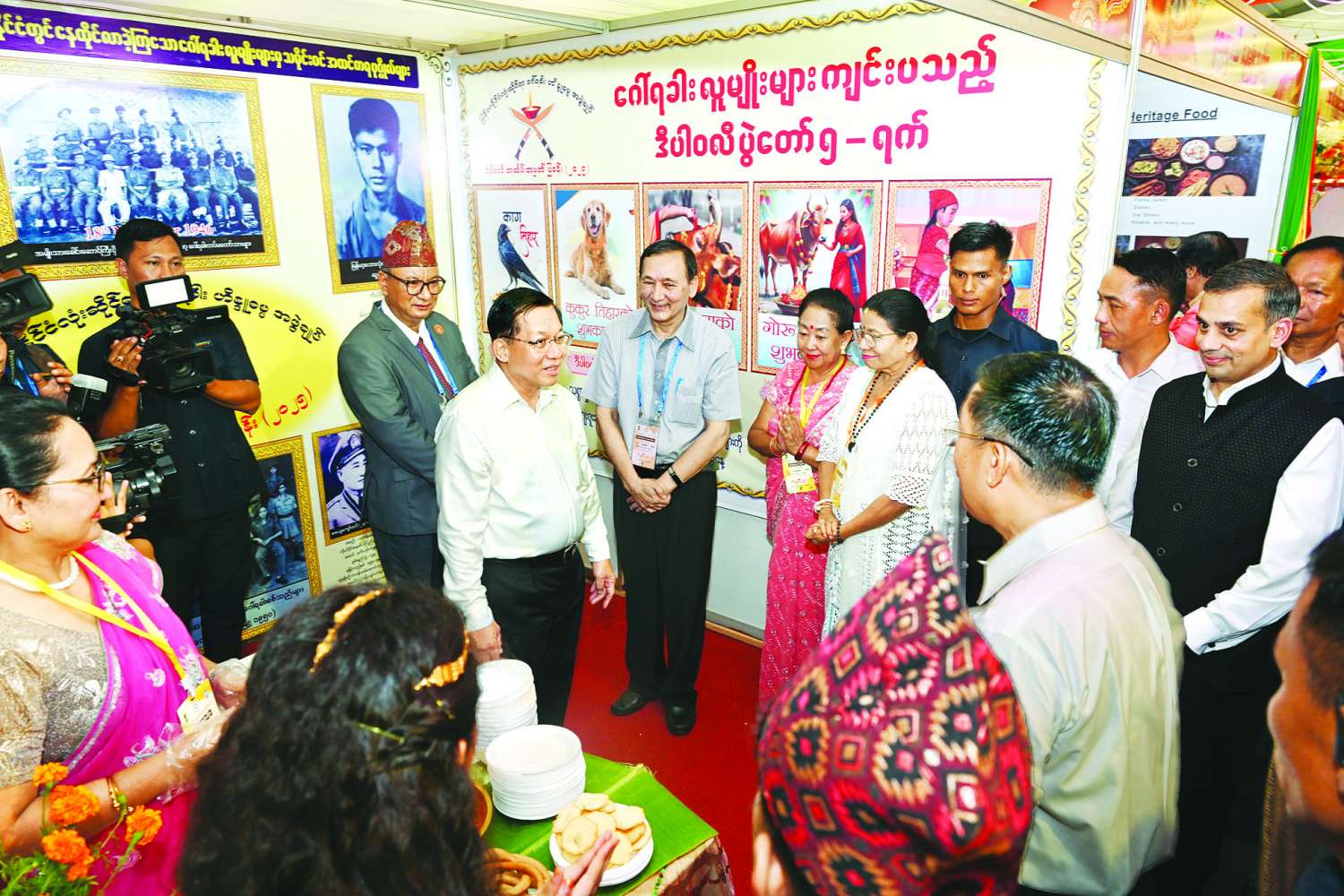 ၎င်းနောက် နိုင်ငံတော်ယာယီသမ္မတ နိုင်ငံတော်လုံခြုံရေးနှင့် အေးချမ်းသာယာရေးကော်မရှင်ဥက္ကဋ္ဌနှင့် ဇနီး၊ အဖွဲ့ဝင်များသည် မြန်မာ-အိန္ဒိယနှစ်နိုင်ငံချစ်ကြည်ရေးပြခန်းများ၊ စီးပွားရေးလုပ်ငန်းပြခန်းများနှင့် မျိုးနွယ်စုများ၏ ပြခန်းများအား ပြခန်းတစ်ခုချင်းစီအလိုက် လှည့်လည်ကြည့်ရှုကြသည်။