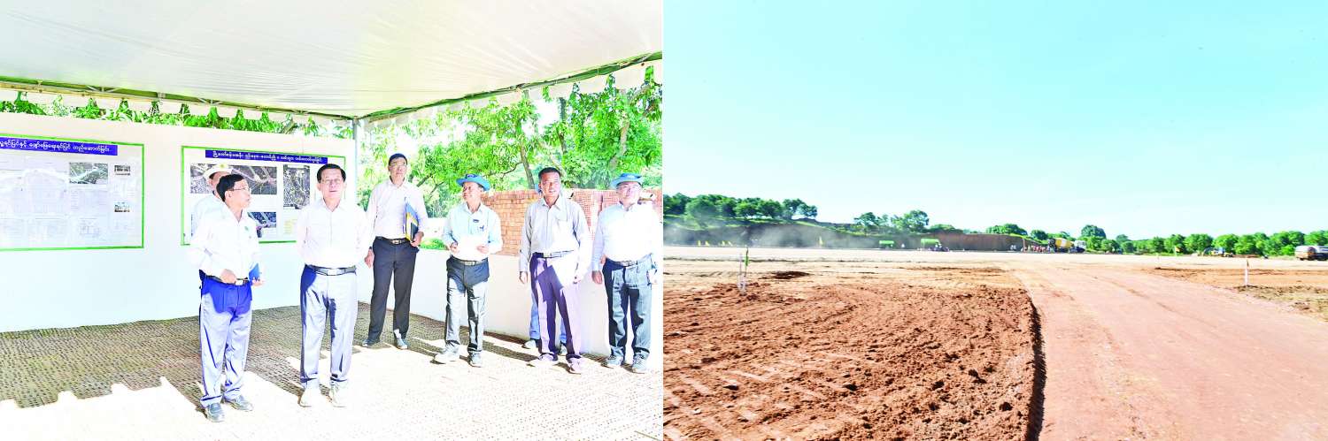 ဦးစွာ နိုင်ငံတော်ယာယီသမ္မတ နိုင်ငံတော်လုံခြုံရေးနှင့်အေးချမ်းသာယာရေးကော်မရှင်ဥက္ကဋ္ဌသည် နေပြည်တော်မြို့တော်ခန်းမအနီး ပြည်သူ့ရင်ပြင်နှင့်ဖျော်ဖြေရေးရင်ပြင်တည်ဆောက်နေမှုနှင့် ပျဉ်းမနား-တောင်ညို ၈ လမ်းသွားလမ်းဖောက်လုပ်နေမှုလုပ်ငန်းခွင်နေရာသို့ ရောက်ရှိကြရာ ဆောက်လုပ်ရေးဝန်ကြီးဌာနပြည်ထောင်စုဝန်ကြီး ဦးမျိုးသန့်၊ နေပြည်တော်ကောင်စီဥက္ကဋ္ဌ ဦးသန်းထွန်းဦးနှင့်တာဝန်ရှိသူများက လုပ်ငန်းဆောင်ရွက်နေမှုအခြေအနေများကို ရှင်းလင်းတင်ပြသည်။