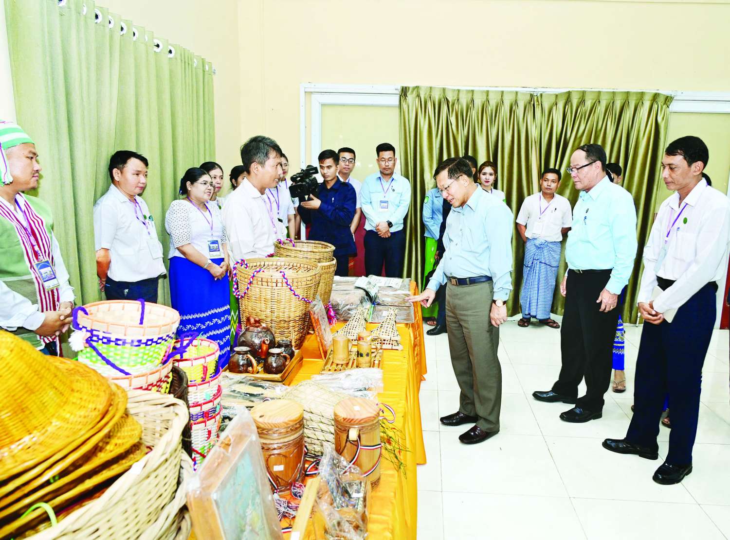 ထို့နောက် နိုင်ငံတော်ယာယီသမ္မတ နိုင်ငံတော်လုံခြုံရေးနှင့်အေးချမ်းသာယာရေးကော်မရှင်ဥက္ကဋ္ဌသည် ခင်းကျင်းပြသထားသည့် ကရင်ပြည်နယ်အတွင်းရှိ အသေးစား၊ အငယ်စားနှင့် အလတ်စားစီးပွားရေး (MSME) လုပ်ငန်းများမှ ထွက်ရှိသည့် ထုတ်ကုန်ပစ္စည်းများအား စိတ်ပါဝင်စားစွာဖြင့် လှည့်လည်ကြည့်ရှုပြီး တာဝန်ရှိသူများ၏ တင်ပြချက်များ အပေါ်လိုအပ်သည်များ လမ်းညွှန်မှာကြားသည်။