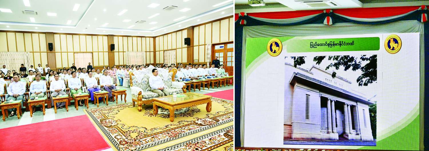 ယင်းနောက် နိုင်ငံတော်ယာယီသမ္မတ နိုင်ငံတော်လုံခြုံရေးနှင့်အေးချမ်းသာယာရေးကော်မရှင်ဥက္ကဋ္ဌသည် မြန်မာနိုင်ငံတော်ဗဟိုဘဏ် (မန္တလေးဘဏ်ခွဲ) အဆောက်အဦသစ် တည်ဆောက်ခဲ့မှု မှတ်တမ်းဓာတ်ပုံများအား ကြည့်ရှုရာ တာဝန်ရှိသူများက ရှင်းလင်းတင်ပြခဲ့သည်။