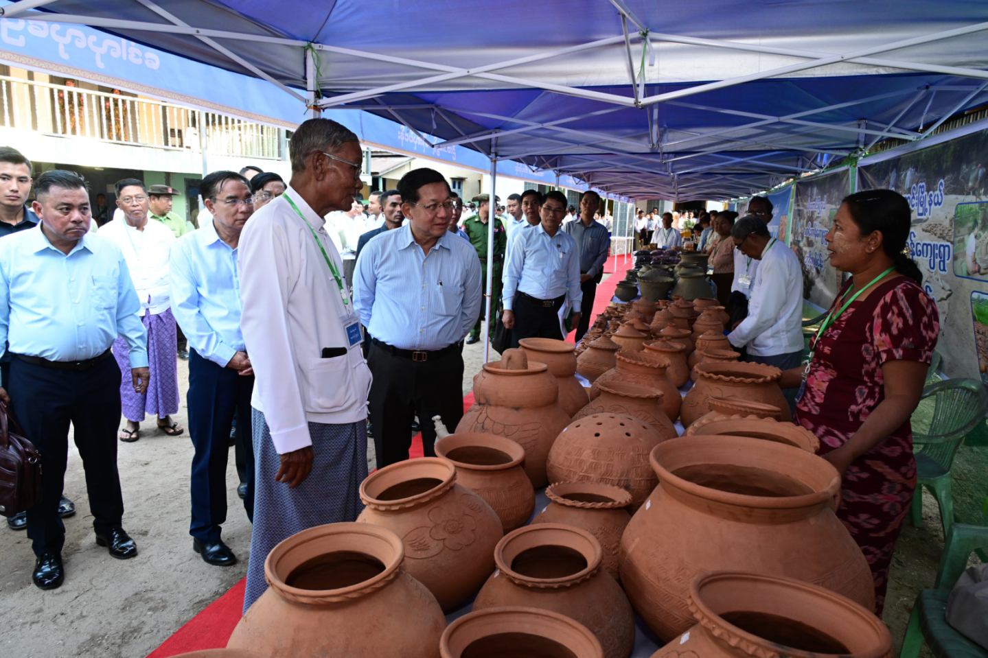 ထို့နောက် နိုင်ငံတော်ယာယီသမ္မတ နိုင်ငံတော်လုံခြုံရေးနှင့် အေးချမ်းသာယာရေးကော်မရှင်ဥက္ကဋ္ဌသည် ခင်းကျင်းပြသထားသည့် ပန်းတောင်းမြို့နယ်အတွင်းရှိ အသေးစား၊ အငယ်စားနှင့် အလတ်စားစီးပွားရေး (MSME) လုပ်ငန်းများမှ ထွက်ရှိသည့် ထုတ်ကုန်ပစ္စည်းများအား စိတ်ပါဝင်စားစွာဖြင့် လှည့်လည်ကြည့်ရှုပြီး တာဝန်ရှိသူများ၏ တင်ပြချက်များအပေါ် လိုအပ်သည်များ လမ်းညွှန်မှာကြားခဲ့ကြောင်း သတင်းရရှိသည်။
