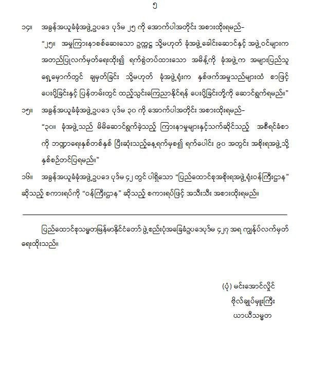 ဝန်ကြီးဌာန ကြေညာချက်များ