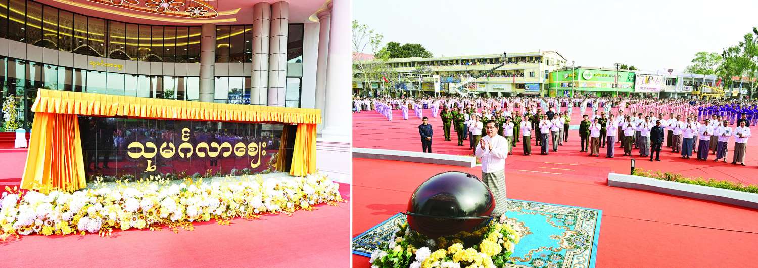 ပြင်ဦးလွင်မြို့၊ သုမင်္ဂလာအဆင့်မြင့်ဈေး ဖွင့်ပွဲအခမ်းအနားကို ယနေ့နံနက်ပိုင်းတွင် ကျင်းပပြုလုပ်ရာ ပြည်ထောင်စုသမ္မတမြန်မာနိုင်ငံတော် ယာယီသမ္မတ နိုင်ငံတော်လုံခြုံရေးနှင့်အေးချမ်းသာယာရေးကော်မရှင်ဥက္ကဋ္ဌ ဗိုလ်ချုပ်မှူးကြီးမင်းအောင်လှိုင် တက်ရောက်ဖွင့်လှစ်ပေးသည်။