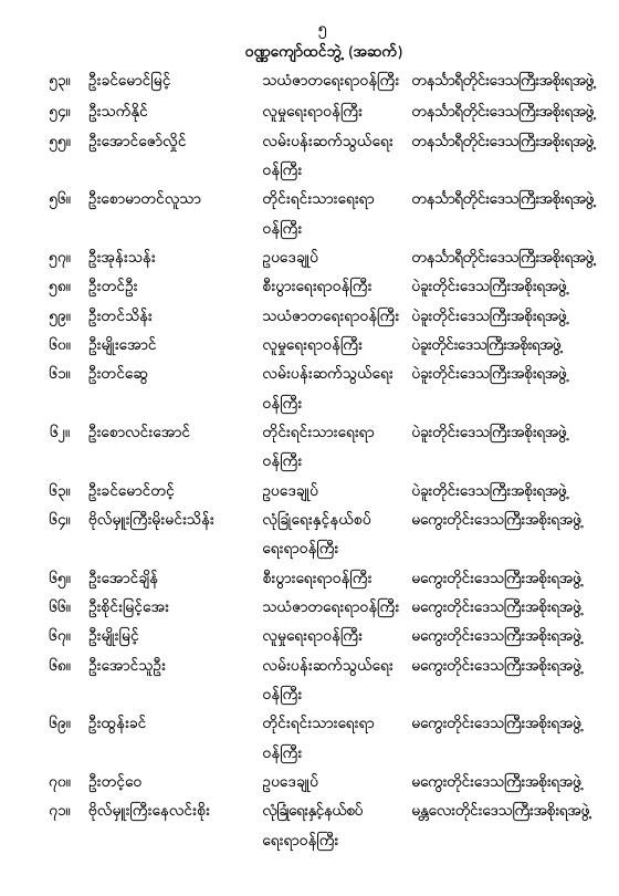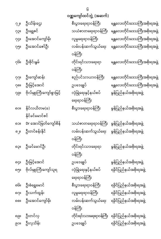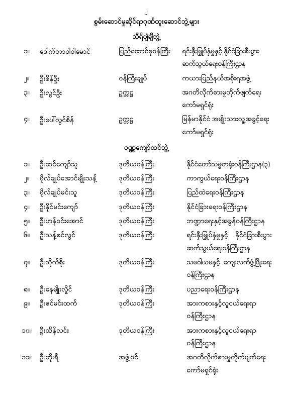 ဝန်ကြီးဌာန ကြေညာချက်များ