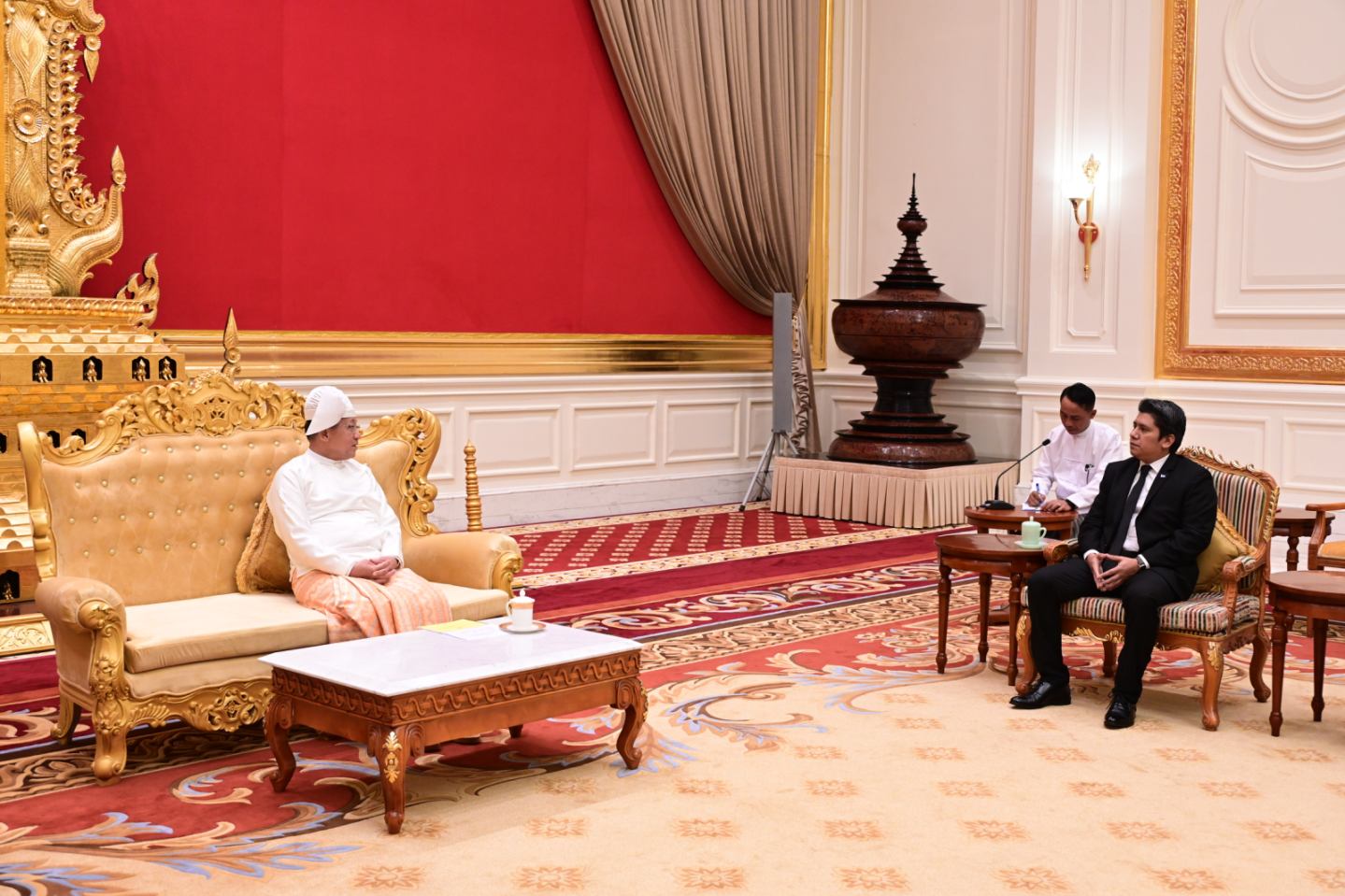 ပြည်ထောင်စုသမ္မတမြန်မာနိုင်ငံတော် ယာယီသမ္မတ နိုင်ငံတော်လုံခြုံရေးနှင့် အေးချမ်းသာယာရေးကော်မရှင်ဥက္ကဋ္ဌ ဗိုလ်ချုပ်မှူးကြီးမင်းအောင်လှိုင်ထံ မြန်မာနိုင်ငံဆိုင်ရာ နီကာရာဂွါ သမ္မတနိုင်ငံသံအမတ်ကြီး H.E. Mr. Segundo Martin Calero Escorcia က ယနေ့နံနက် ၁၀ နာရီတွင် နေပြည်တော်ရှိ အမျိုးသားကာကွယ်ရေးနှင့် လုံခြုံရေးကောင်စီရုံး၊ သံတမန်ဆောင်ဧည့်ခန်းမ၌ ၎င်း၏သံအမတ်ခန့်အပ်လွှာကို ပေးအပ်သည်။