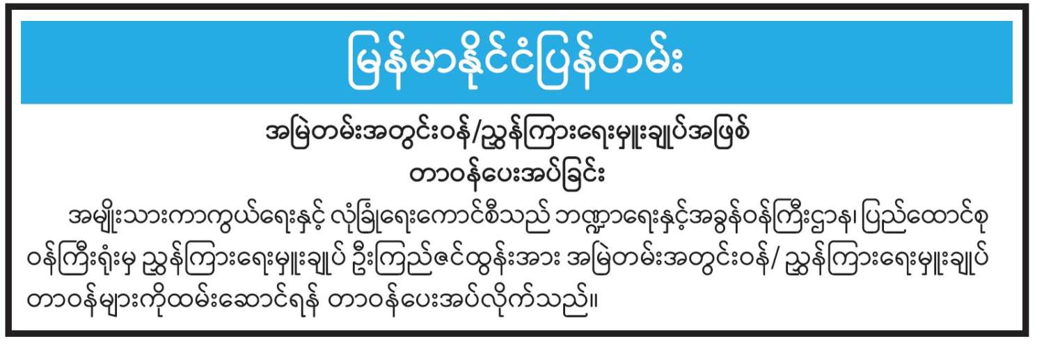 စက်သုံးဆီများ ဖြန့်ဖြူးရောင်းချပေးနေသည့်အခြေအနေ အသိပေးထုတ်ပြန်ခြင်း