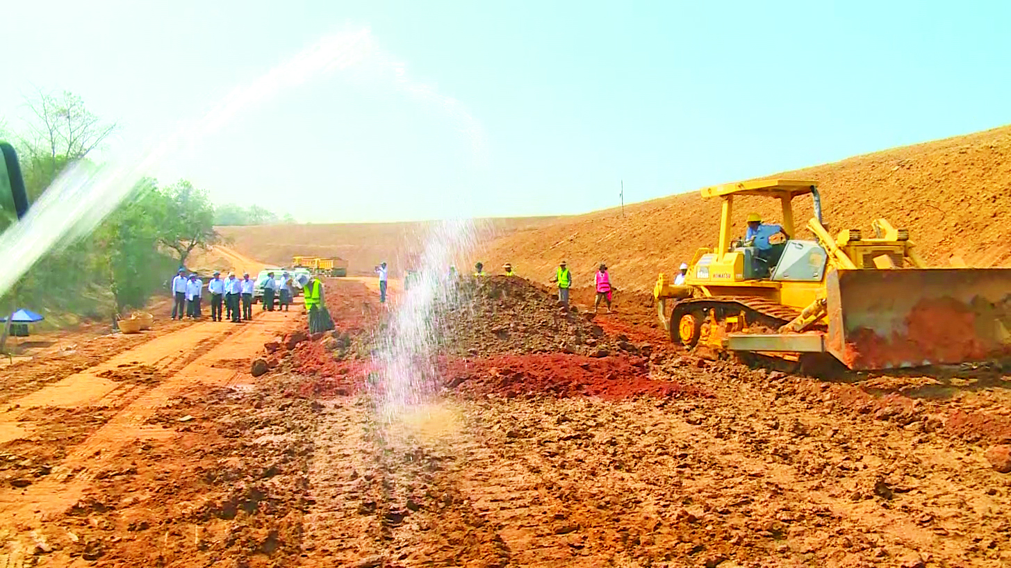 စိုက်ပျိုးရေး၊ မွေးမြူရေးနှင့်ဆည်မြောင်းဝန်ကြီးဌာန ဒုတိယဝန်ကြီး ဦးဗိုလ်ဗိုလ်ကျော်သည် တာဝန်ရှိသူများနှင့်အတူ မတ် ၇ ရက်က မန္တလေးငလျင်ကြီးလှုပ်ခတ်မှုကြောင့် ထိခိုက်ခဲ့သည့် ပြည်ထောင်စုနယ်မြေ နေပြည်တော် တပ်ကုန်းမြို့နယ် မယ်ဇလီကျင်းကျေးရွာအနီးရှိ ဆင်သေရေလှောင် တမံအခိုင်အမာပြုပြင်နေမှုကို ကြည့်ရှုစစ်ဆေးသည်။