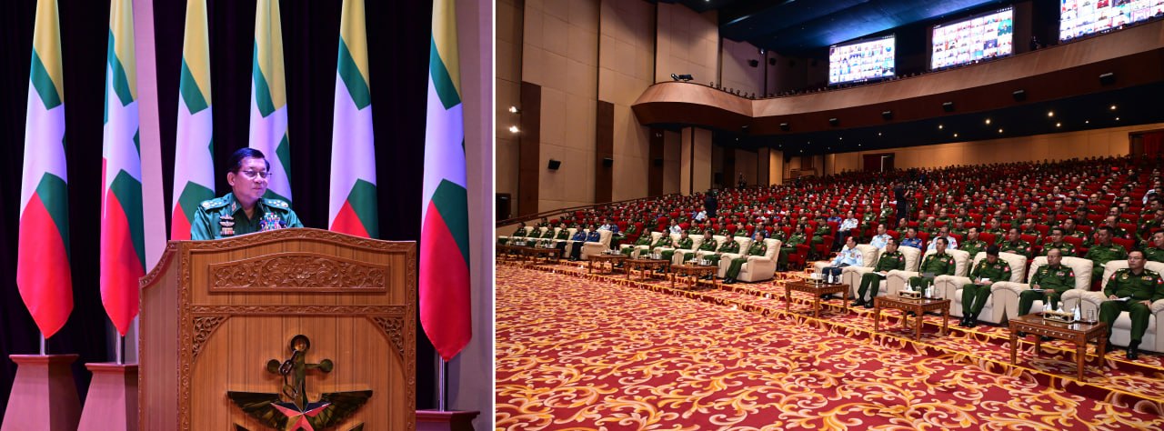 နိုင်ငံတော်လုံခြုံရေးနှင့်အေးချမ်းသာယာရေးကော်မရှင်ဥက္ကဋ္ဌ တပ်မတော်ကာကွယ်ရေးဦးစီးချုပ် ဗိုလ်ချုပ်မှူးကြီး မင်းအောင်လှိုင်က ၂၀၁၁ ခုနှစ်မှ ၂၀၂၅ ခုနှစ်အတွင်း ခေတ်မီတပ်မတော်ဖြစ်စေရေး ဆောင်ရွက်ခဲ့မှုနှင့်ပတ်သက်၍ ပြန်လည်သုံးသပ်ဆွေးနွေးမှာကြားခြင်းအား ယနေ့မွန်းလွဲပိုင်းတွင် နေပြည်တော်၊ ဇေယျာသီရိဗိမာန်၊ သဘင်ဆောင်ခန်းမ၌ ကျင်းပပြုလုပ်သည်။