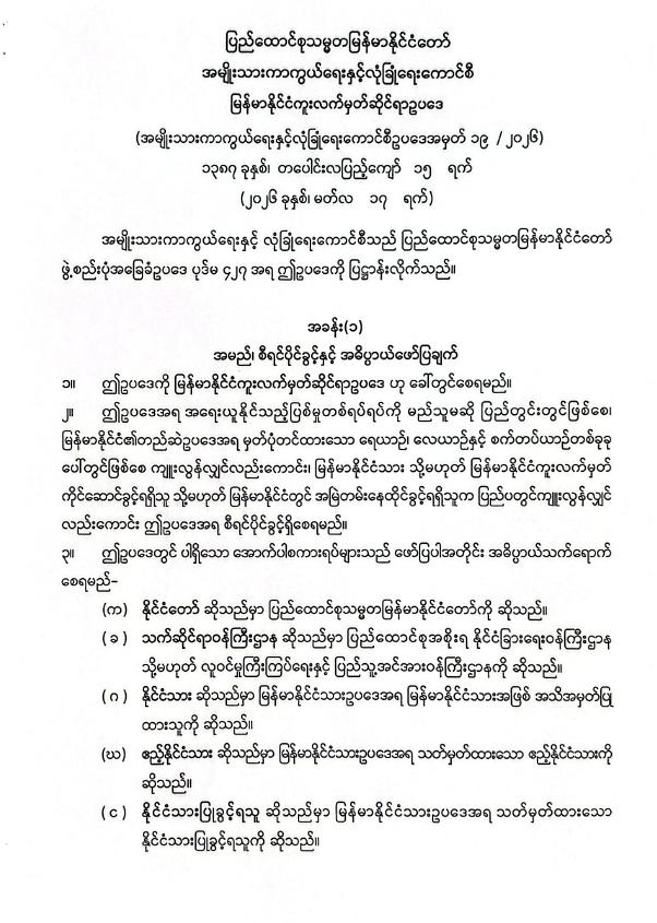မြန်မာနိုင်ငံကူးလက်မှတ်ဆိုင်ရာဥပဒေ ပြဋ္ဌာန်း